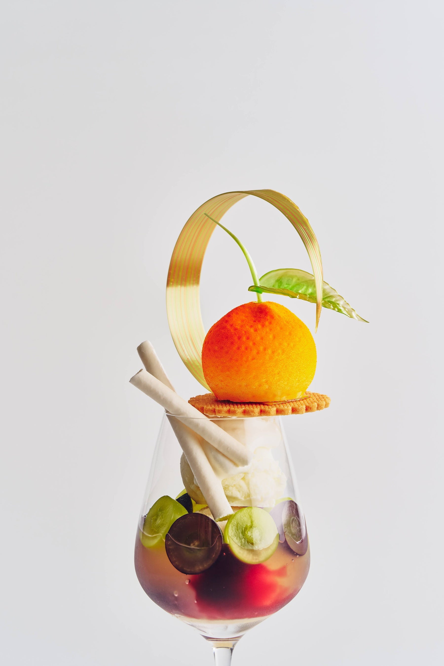 すっきりした台湾烏龍茶、シャインマスカットとハーブが果実味溢れるパフェに