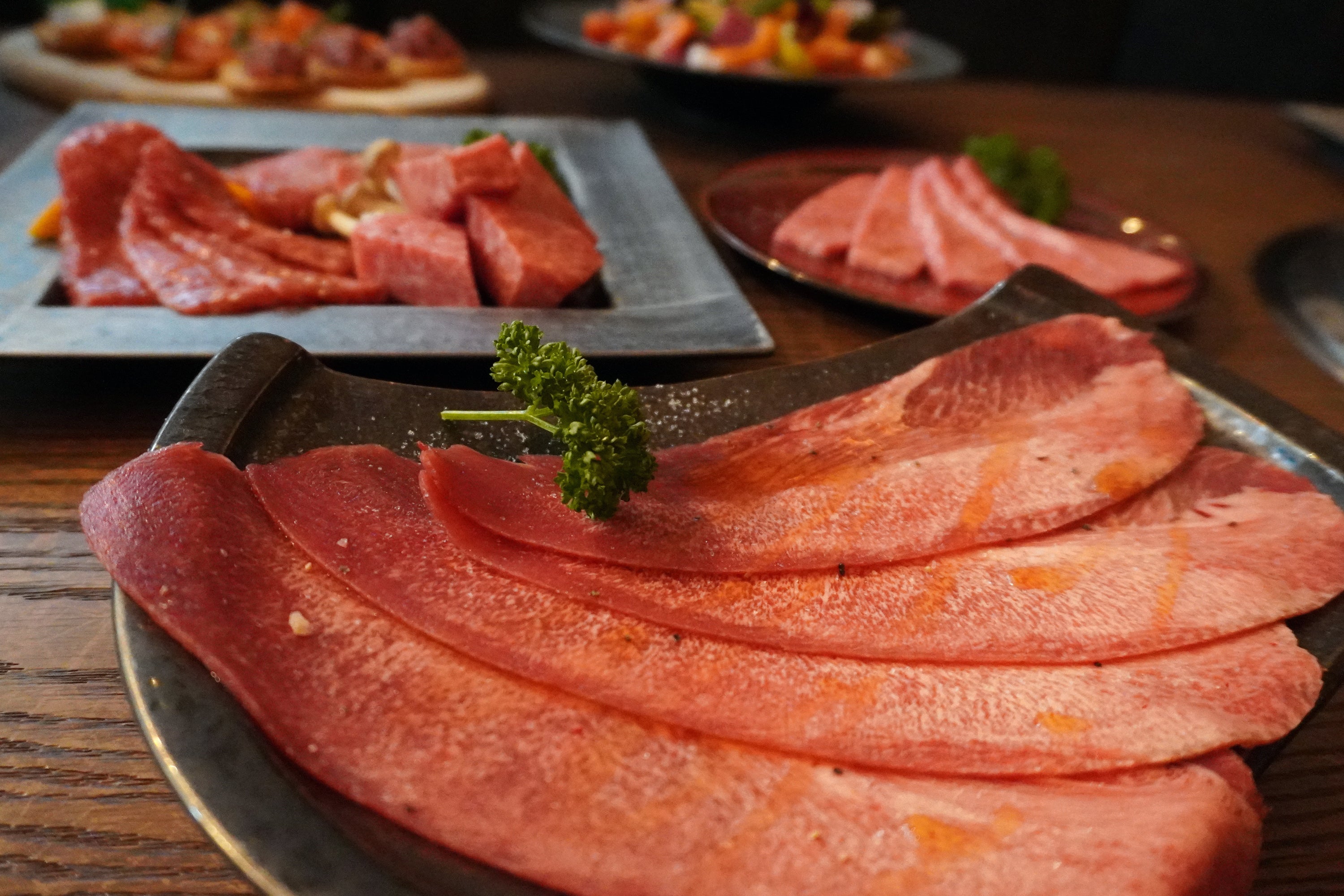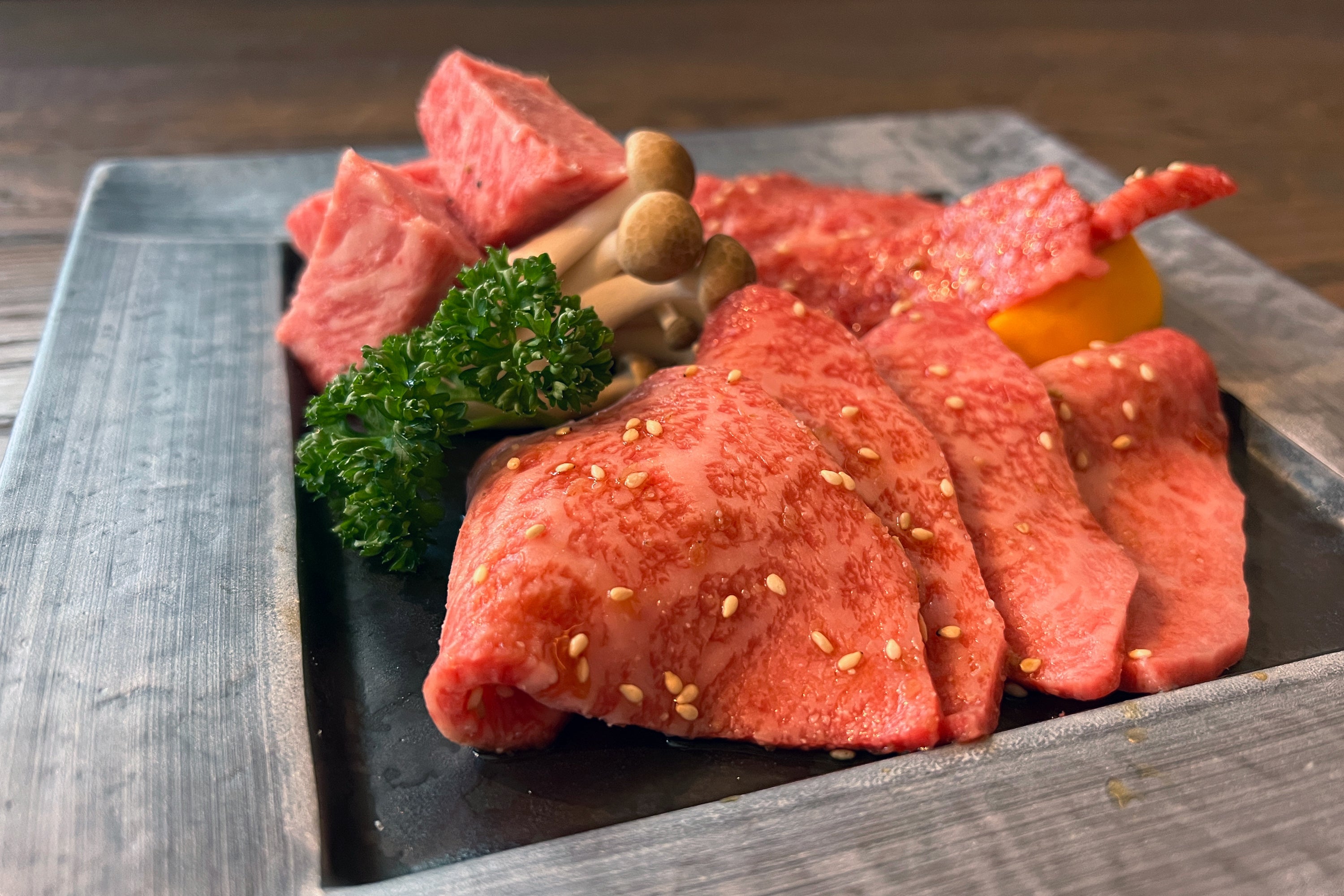 看板メニューは、様々な産地の和牛とタン。良質な和牛の脂は旨味が凝縮されており、肉本来のおいしさをご堪能いただけます。特に、そのままスライスした長いタンは、他の焼肉店ではあまりお目にかかることのできないメニューです。