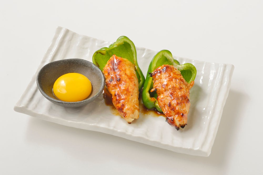 ■メニュー名/月見ピーマンつくね(2本) ■価格/ 509円(税込559円)