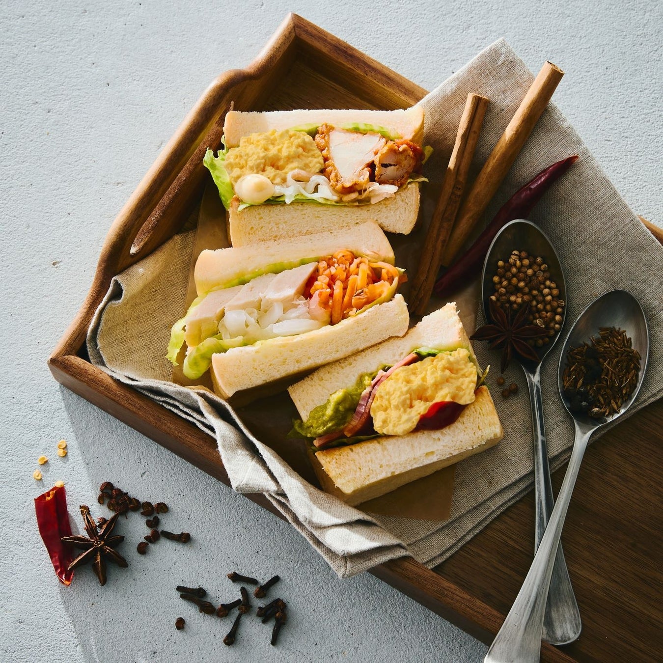 この度は、スパイス・ハーブの魅力をより多くの方に、より手軽に味わって頂きたいと思い、スパイス・ハーブの魅力をぎっしり詰めたサンドイッチである「サンド&スパイス」を発売します。