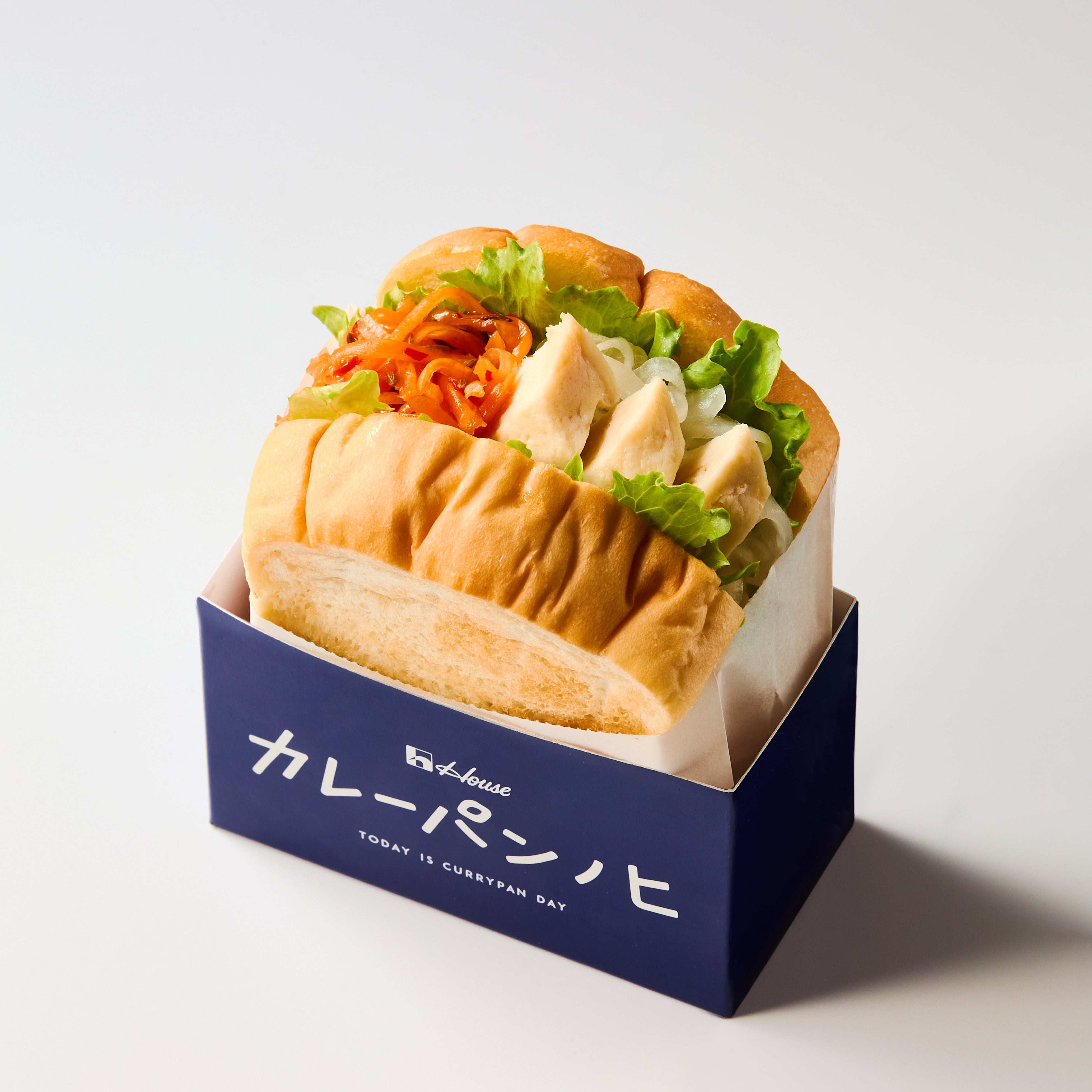 「ハウス カレーパンノヒ」の新作は、厚めに切ったふわふわもちもち食感の食パンに、スパイスやハーブが香るこだわり具材をぎっしりと挟んだボリュームのあるサンドイッチです。具材は、インドのスパイシー唐揚げであるチキン65や、インド風漬物であるアチャールなどバリエーション豊かで、全3品ともにスパイス・ハーブを活かした味わいに仕上げました。