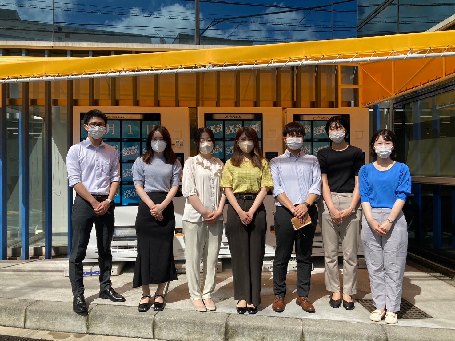 運営は浅漬・キムチメーカーの株式会社ピックルスコーポレーション。昨年11月に冷凍自動販売機ど冷えもん1台を導入し、自社商品を含めた運営を開始。この度、さらに2台を新規導入するにあたって集められたメンバーは所属部署も異なる入社2年目の若手社員7名。