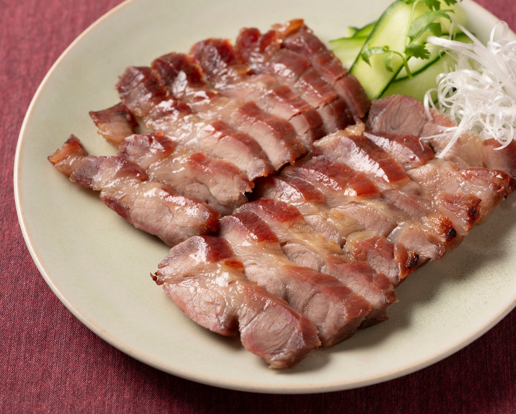高温の窯の中で吊るし、遠火の直火で素早く焼きあげることで、表面はこんがり、中は肉汁を閉じ込めたジューシーな仕上がりに。お好みの厚さにスライスしてお召しあがりください。