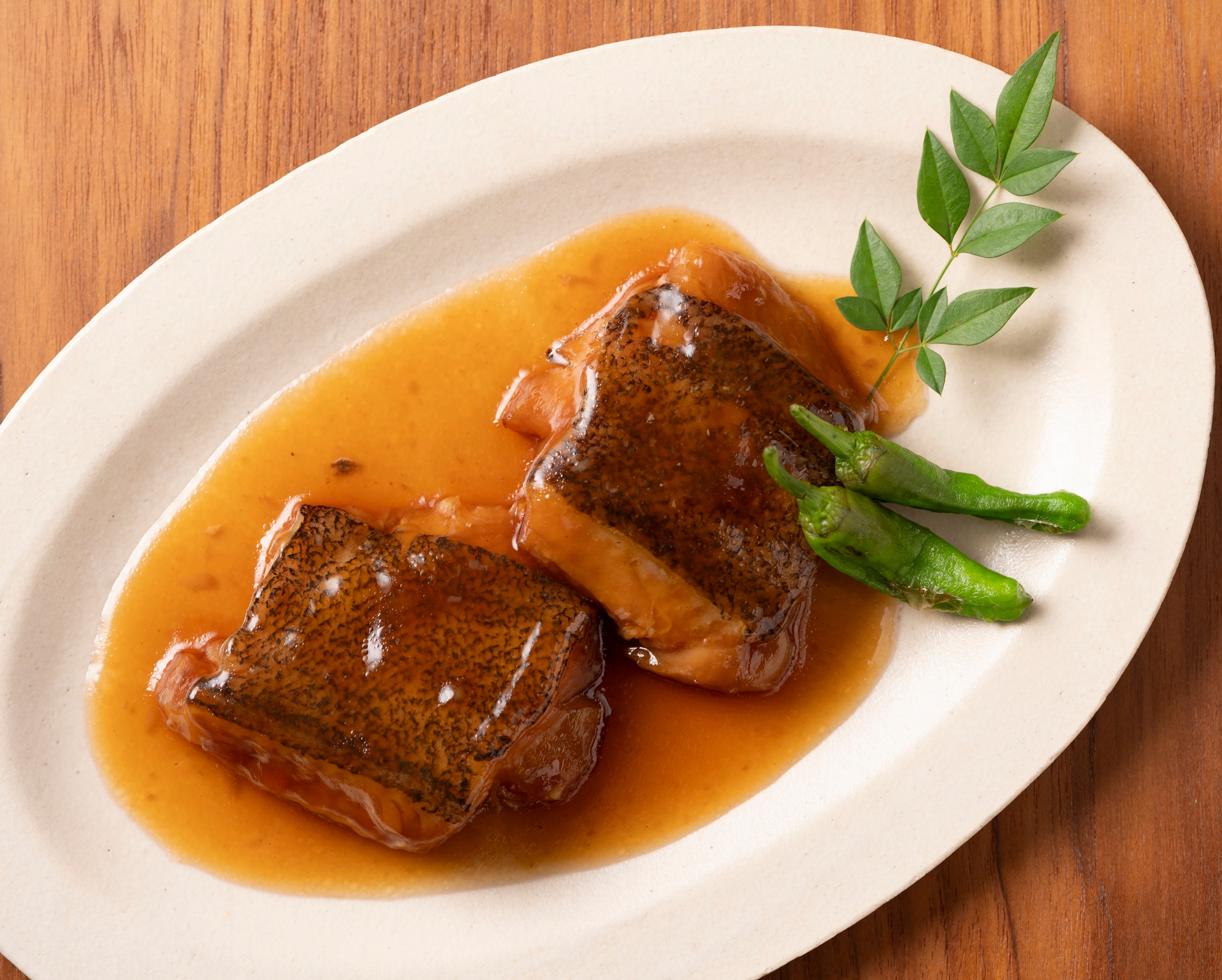 脂乗りの良いふっくらとした身はとても柔らかく、口に運ぶとほろっとほぐれました。オリジナル製法の煮付け出汁は甘辛い照り焼きに仕上がっていて、薄く柔らかい皮も絶品です。