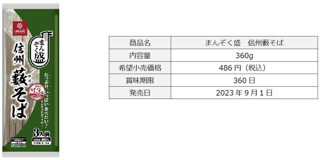 本商品は「乾麺そばの大盛規格の新基準商品」をコンセプトに、たっぷり、いっぱい食べたいそんな方におすすめの商品になっています。