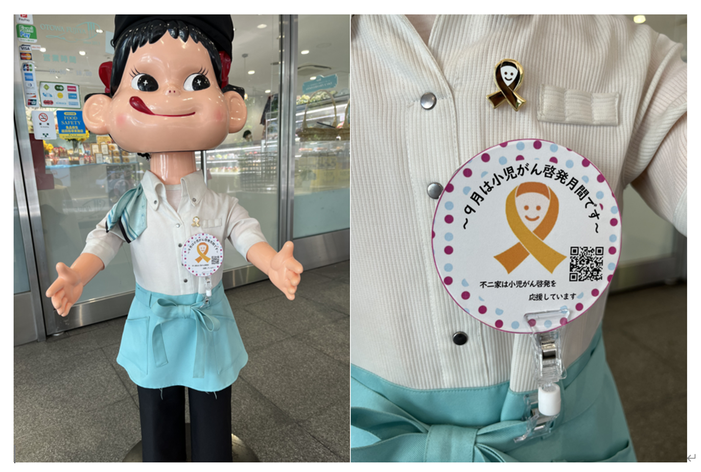 WBSの「企業経営と社会変⾰ゼミ」(鶴⾕武親客員教授)は昨年からCNJと共同で⼩児がん啓発の活動を推進してきました。⼩児がんについて少しでも多くの⽅に知っていただき、治療中の⼦どもたちやサバイバーたちへの⽀援の輪を社会に広めていきたい、という考えに不⼆家が賛同する形で昨年に引き続き啓発キャンペーンが実現しました。