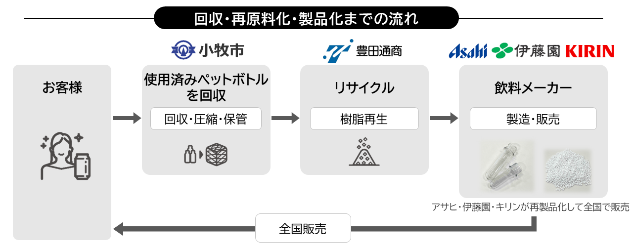 本協定締結により、2024年4月から愛知県小牧市内で市民が分別した使用済みのペットボトル全量を、豊田通商のグループ会社である豊通ペットリサイクルシステムズ株式会社(本社 滋賀、社長 小坂彦二)がメカニカルリサイクルによりペットボトル原料に再生し、アサヒ飲料、伊藤園、キリンビバレッジのペットボトル製品に再利用する予定です。これにより1年間で約400tのペットボトルが再利用される見込みです。また、市民へのペットボトルの分別回収に関する啓発活動にも取り組んでいきます。