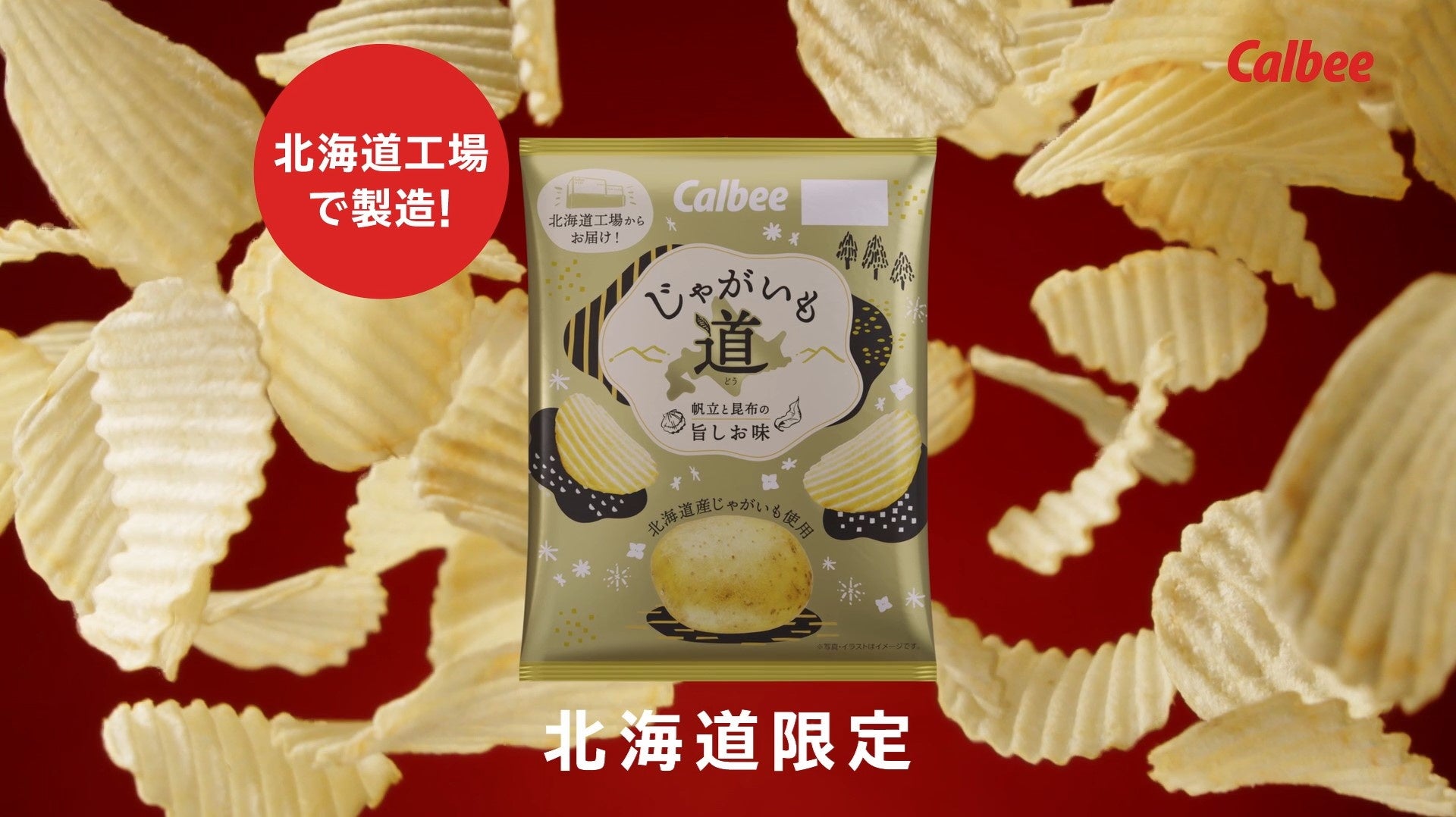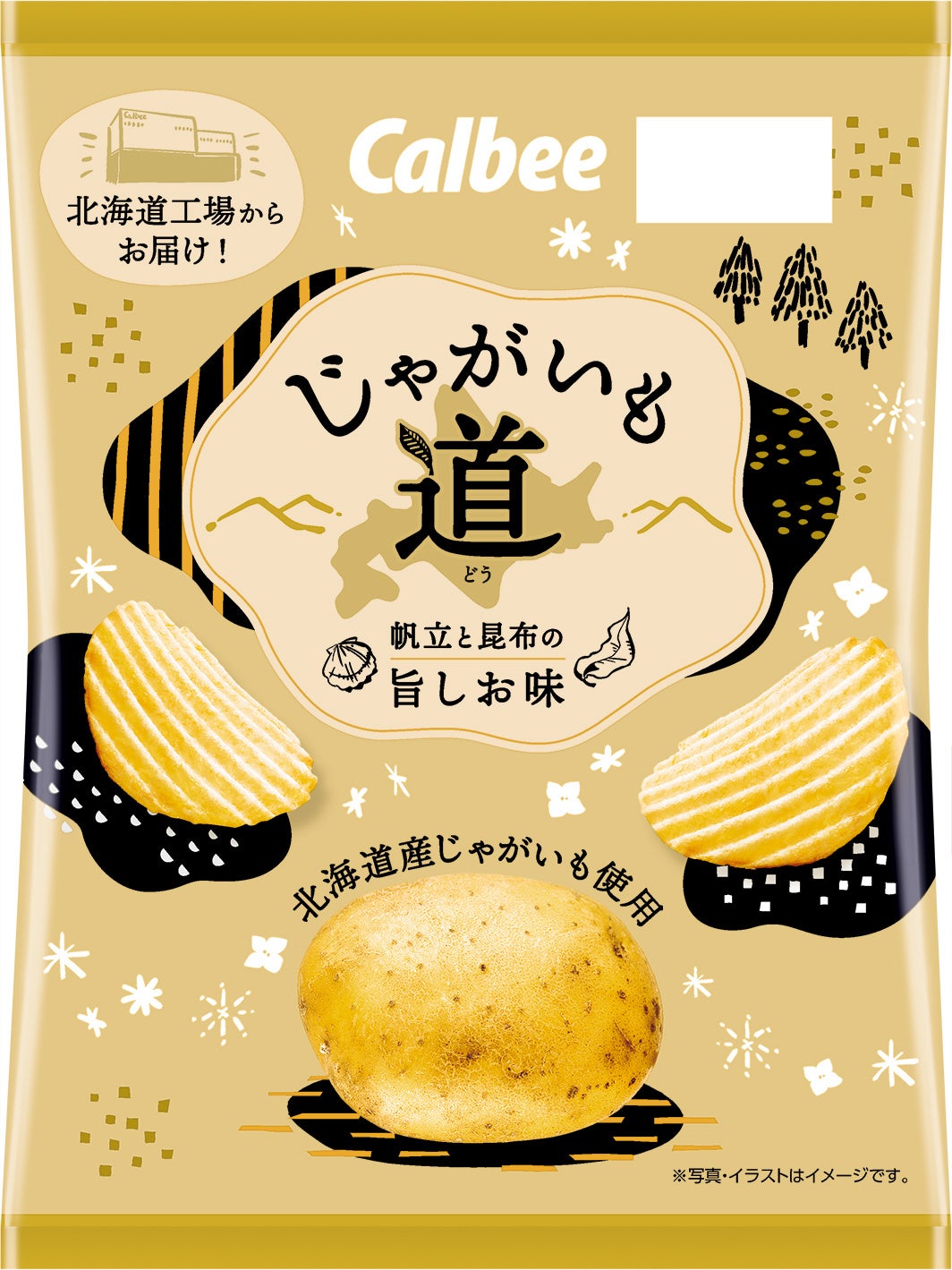 『じゃがいも道 帆立と昆布の旨しお味』は、こうした北海道との深いつながりに感謝を込め、“道民のためのポテトチップス”として開発した商品です。北海道産じゃがいもを使用し、北海道工場で製造。帆立と昆布の旨みをしっかり効かせた、満足感あるしお味です。中身の開発は北海道に縁やゆかりのあるカルビーメンバーが担当し、細部まで北海道らしさにこだわりました。2022年に初めて発売したところ、“今まで食べたポテトチップスで一番おいしい”“帆立と昆布のうま味が効いていてクセになった”(一部抜粋)などと、お客様から大変好評をいただきました。そこで、評価が高かった中身は変えず、パッケージを改良。今年も北海道産じゃがいもの収穫本格化に合わせて発売する運びとなりました。北海道産じゃがいもが使用できる翌年の5月ごろまでに限って販売いたします。