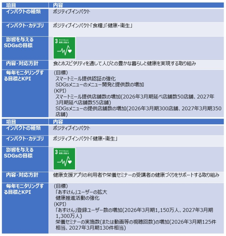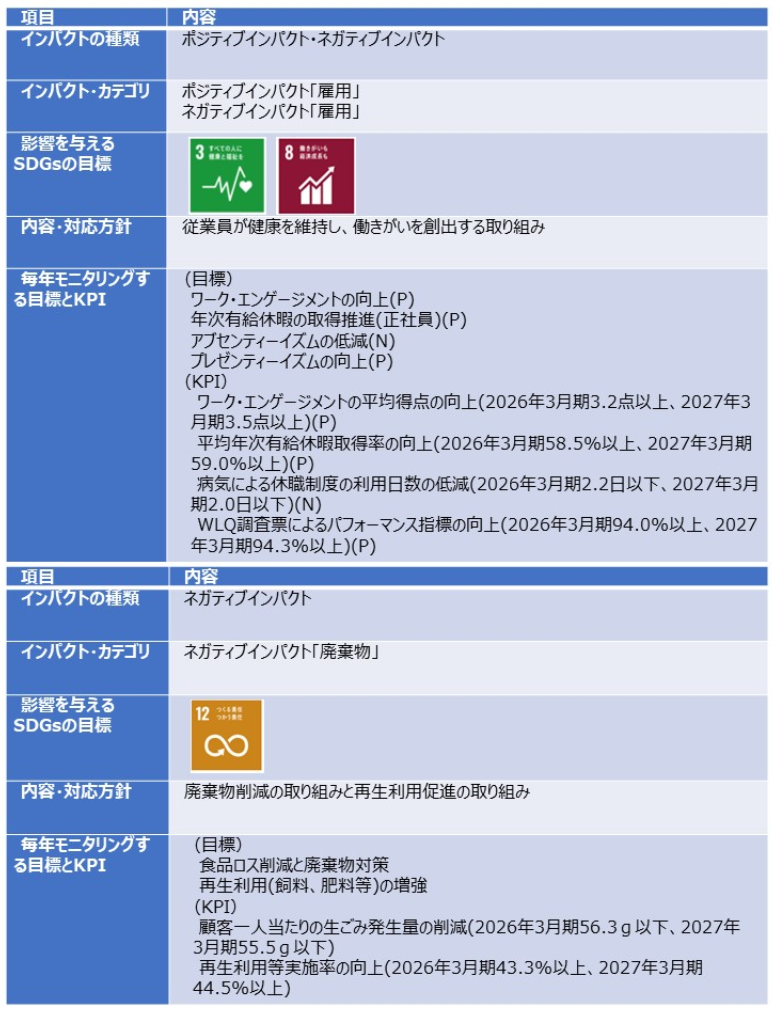 PIF締結にあたり、グリーンハウスグループの事業活動に関連する重要なインパクト領域を評価して決定した重点取組項目および評価指標は以下の通りです。
