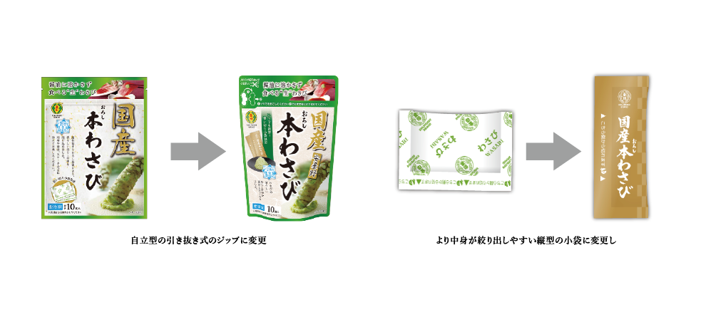 外装はフロントジップを採用し、切れ込みではなく引き抜き式のジップに変更。はさみがなくても、まっすぐに封を開けられます。また、スタンドパックに変更することで商品が自立式になりました。さらに「小袋に中身が残ってもったいない」という声をいただき、個包装を縦長にリニューアル。これにより絞り出しやすさを高めました。