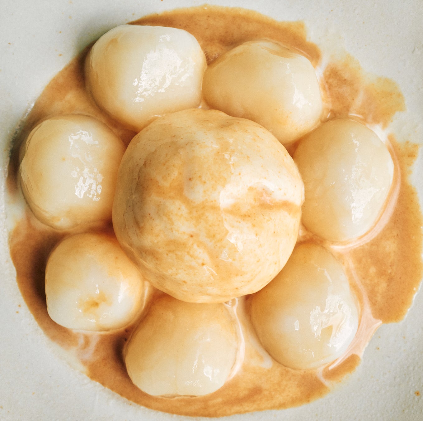 お客様自身で”和三盆仕立ての抹茶ソース”と”波照間産黒糖”を回しかけてお召し上がください。抹茶の苦味が黒糖と和三盆の甘みを引き立てます。まさに砂糖の本来の味わいを生かした白玉アイスです。白玉を黒糖と抹茶ソースに絡め、絶妙なバランスをご堪能ください。