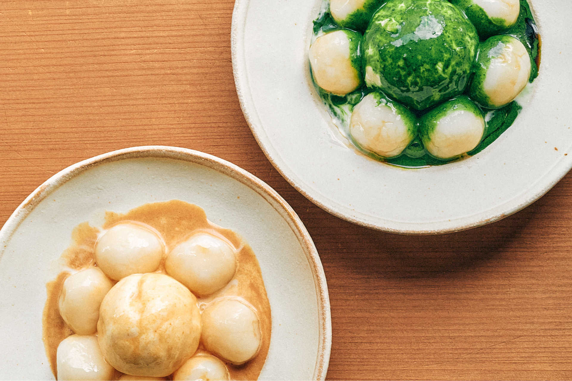 上から「白玉アイス 抹茶」「白玉アイス きな粉」各種 940円(税込)