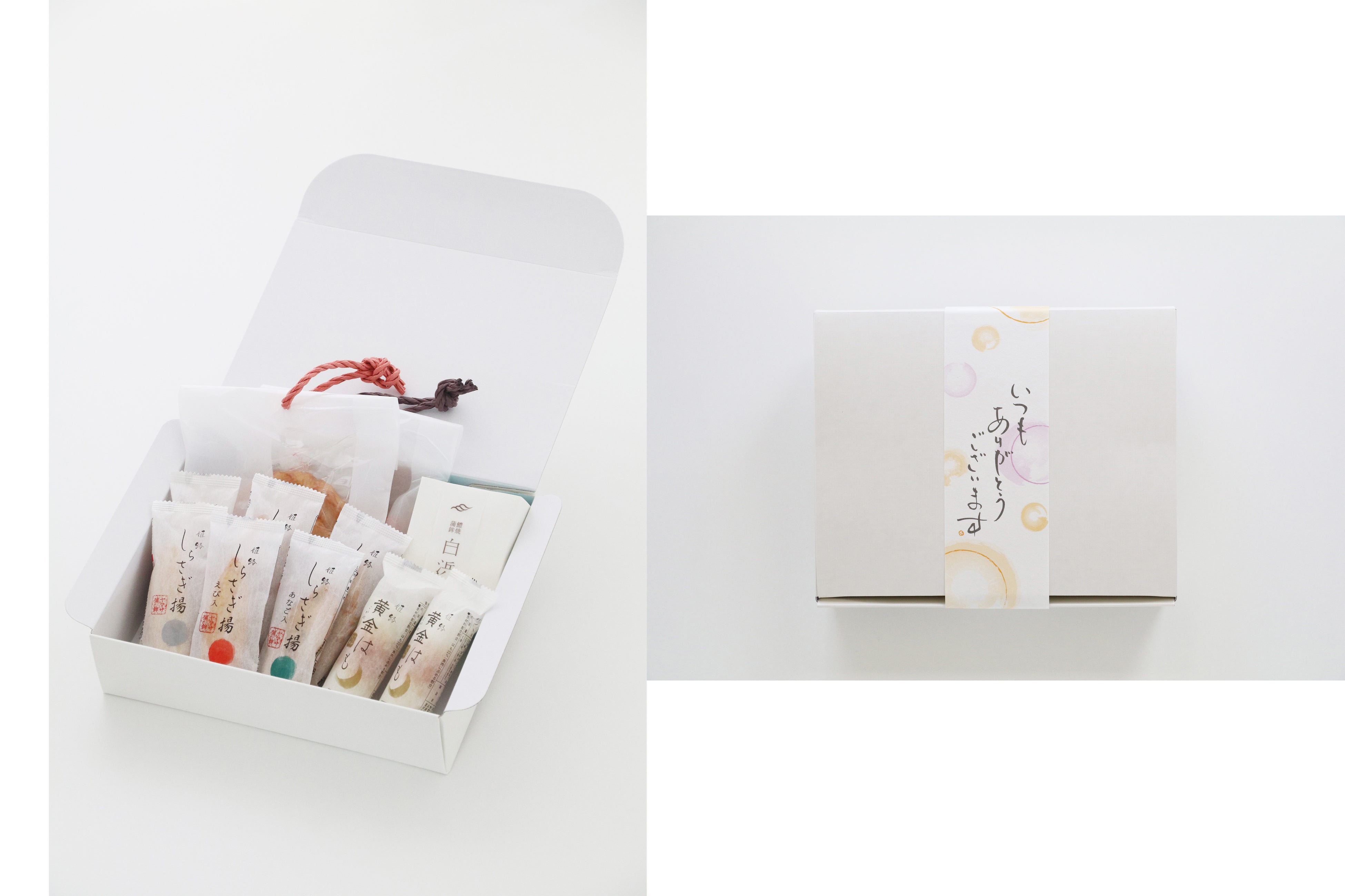 ヤマサ蒲鉾の直売店「かまぼこ工房 夢鮮館」の商品からおすすめ品を厳選、さらに長寿の象徴とされる「えび」を具材に使用した「しらさぎ揚 えび入り」「えび揚げ 真空」が入った敬老の日ならではの詰合せとなっています。