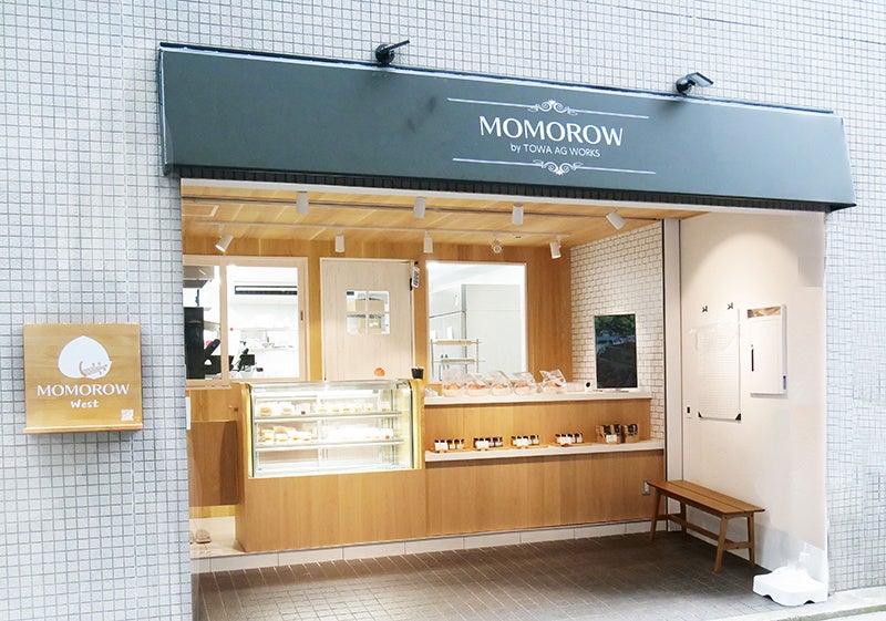 東和AGワークス株式会社は、音響・映像、ICTのシステムコンサルタントである株式会社東和エンジニアリングのSDGsへの取り組みをきっかけとして設立されました。山梨県笛吹市春日居地区にて桃づくりに携わる中で、規格外の桃や傷がついてしまった桃が廃棄される現実を知り、フードロスを無くしたい「もったいない」という思いから桃の加工品販売を開始し、桃スイーツブランド「MOMOROW」を立ち上げ、2021年6月にオンラインショップを開設。今回「MOMOROW」初となる路面店として『MOMOROW West』を東和エンジニアリング関西支社1Fにオープンし、春日居の桃をそえたプレミアムバウムパフェなどの桃菓子の販売を開始しました。