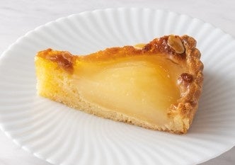 風味豊かなアーモンドクリームに、大きくカットした洋梨コンポートをのせて焼き上げ、アーモンドスライスを散らしました。