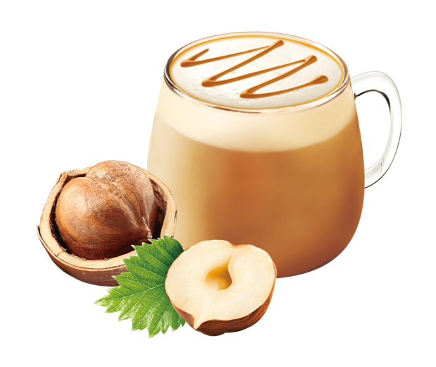 香ばしく、ほろ苦いコーヒーの味わいと相性が良い芳醇な味わいのヘーゼルナッツソースに仕上げました。ヘーゼルナッツの甘さや香ばしさを引き立たせるために、隠し味としてバニラ香料を加えています。