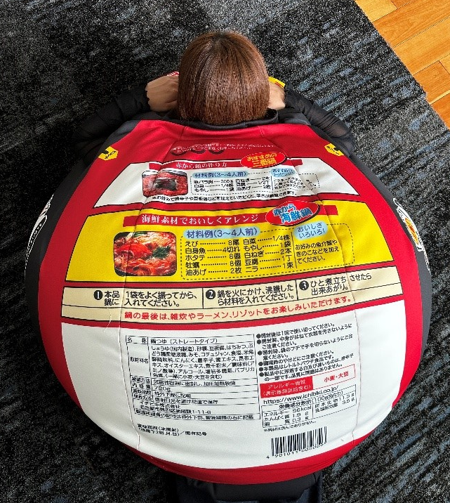 人をダメにするビーズクッションのブランド ハナロロを運営する有限会社タキコウ縫製(本社:愛知県岡崎市)は、イチビキ株式会社が販売する『ストレート赤から鍋スープ三番』をモチーフとした『着るビーズクッション』を製作しました。