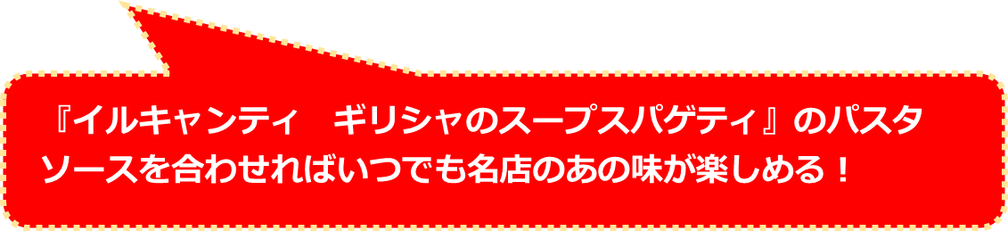 『真夜中のスパゲティ』とならぶイルキャンティの人気メニュー『ギリシャのスープスパゲティ』の常温パスタソースが新登場。