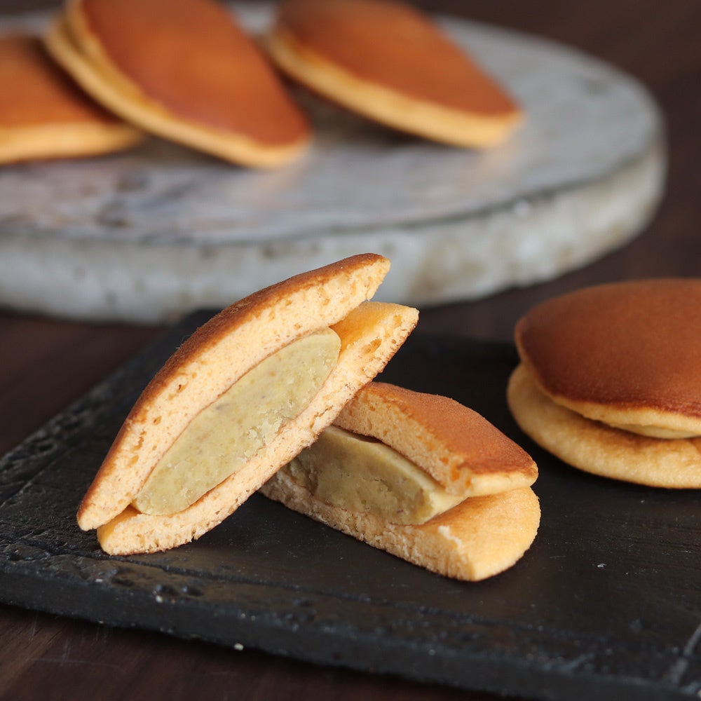 まるで、ホクホクの国産栗をそのまま食べているかのような風味を、バターの香り、しっとり優しいどら焼きの皮でつつみました。