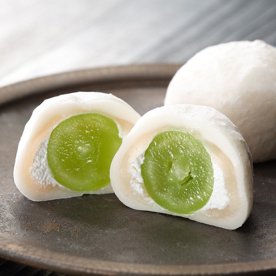 瑞々しいシャインマスカットを、白餡とホイップクリームにあわせふわふわのお餅で包みました。