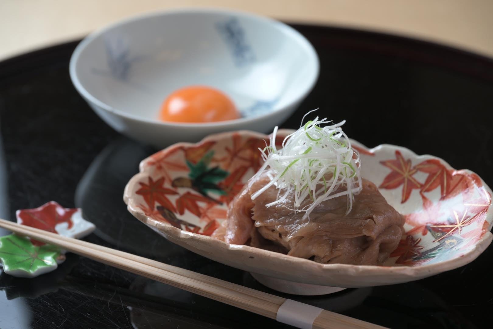 料理:〔前菜〕イチボの炙りタルタル 〔ダブルメイン〕①サーロインしゃぶしゃぶ ②モモのロースト〔結び〕フィレカツサンド