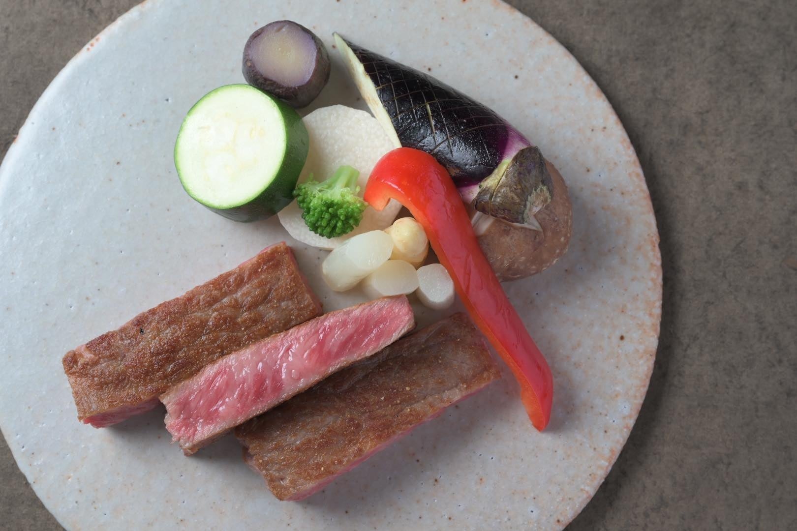 料理:常陸牛”煌”ヒレ肉の来福酒粕包み焼き〜茨城県産の野菜のソテー添え〜