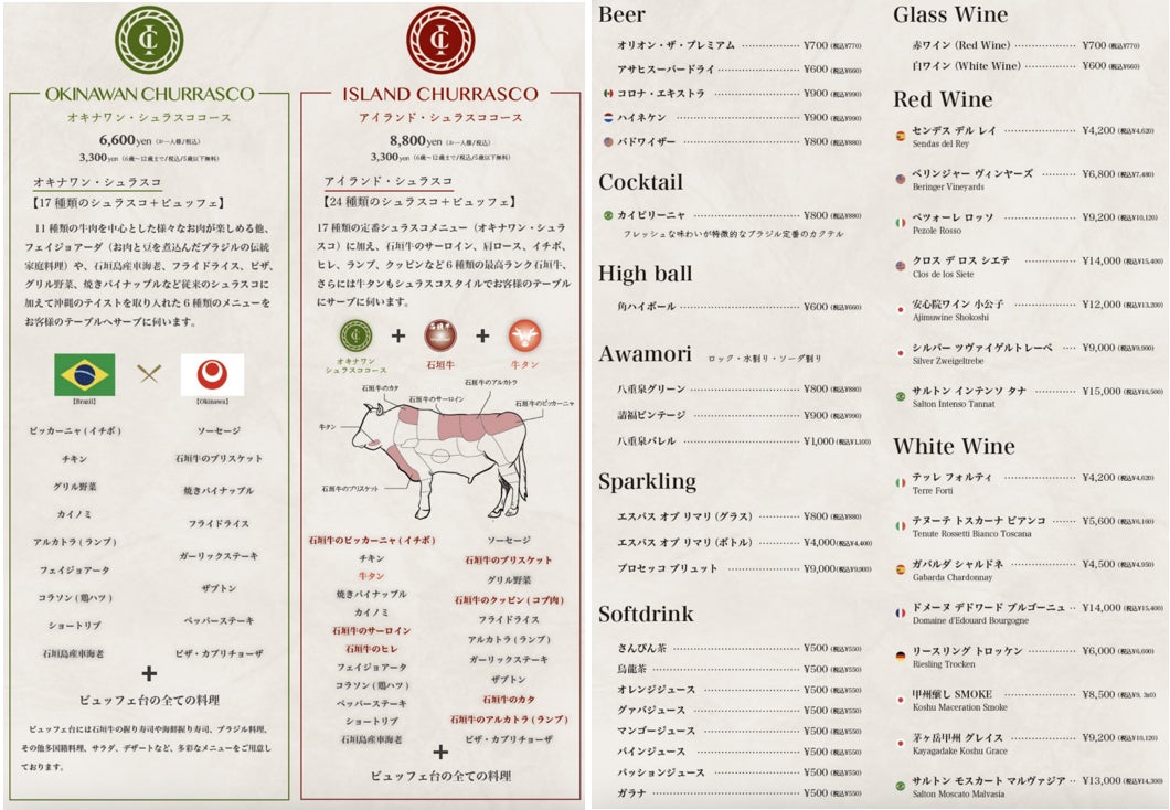 17種類のオキナワン・シュラスコメニューに加え、石垣牛のサーロイン、イチボなど6種類の最高ランクの石垣牛、さらには牛タンもシュラスコスタイルでご用意。