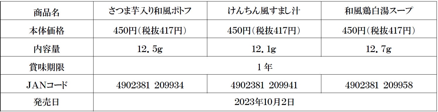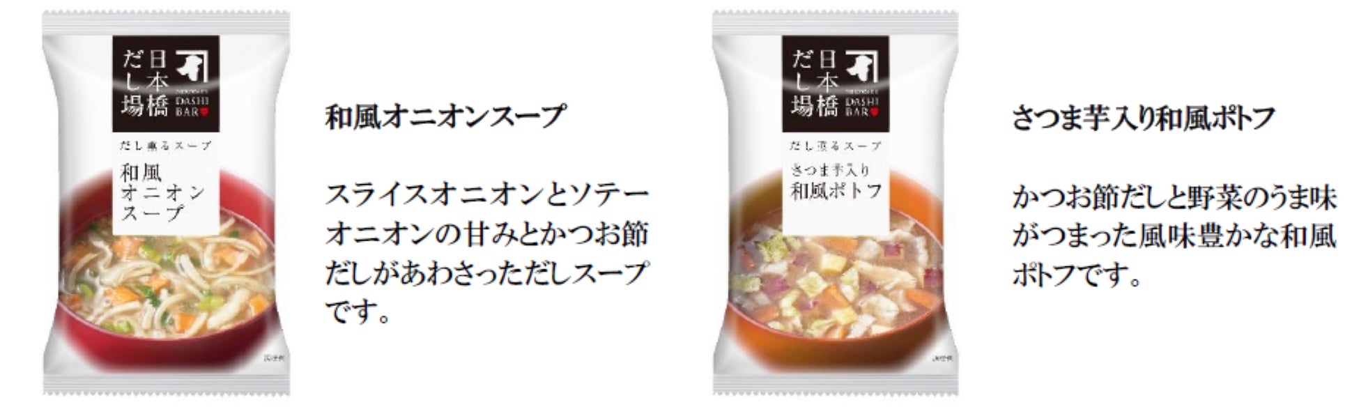 いつでも日本橋だし場の「だしスープ」を味わっていただけるように開発しました。より多くのお客様にご賞味いただけるようにフリーズドライの常温品にしたので、「一汁旬菜 日本橋だし場」などの直営店舗での販売も可能になりました。具だくさんでだし薫るスープをお愉しみください。