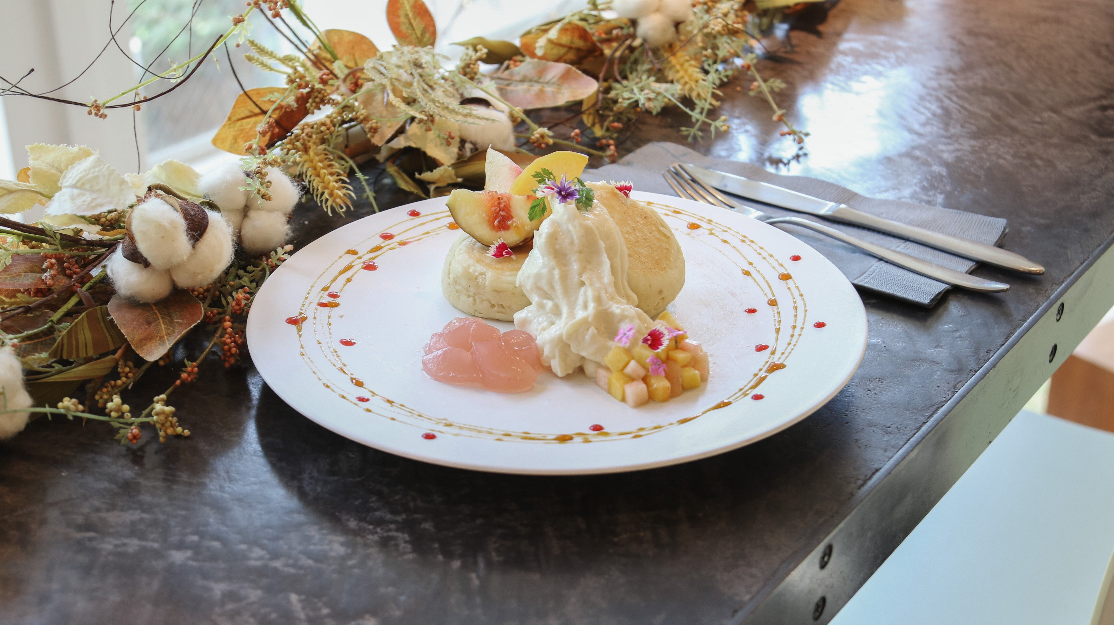 当店人気ナンバー1スイーツのヴィーガンパンケーキは、初秋の味覚と味わう季節限定味に
