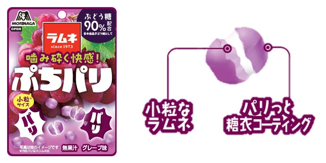 森永製菓株式会社(東京都港区芝、代表取締役社長・太田 栄二郎)は、今年発売50周年を迎えた「森永ラムネ」シリーズから、ふにゃもち食感のソフトキャンディ「生ラムネ玉」と、パリっとかみ砕ける小粒タイプのラムネ「ぷちパリラムネ<グレープ味>」を9月12日(火)より新発売いたします。
