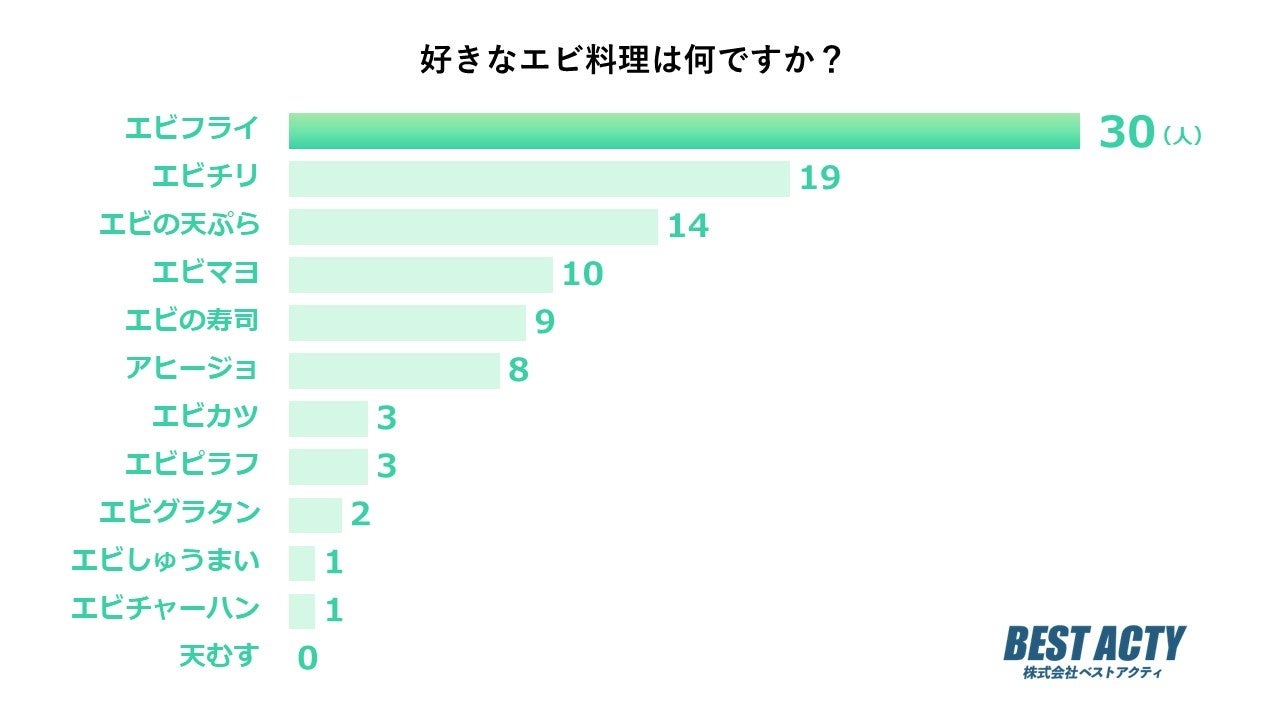 アンケートの結果、「エビフライ」と答える人が最も多い結果となりました。