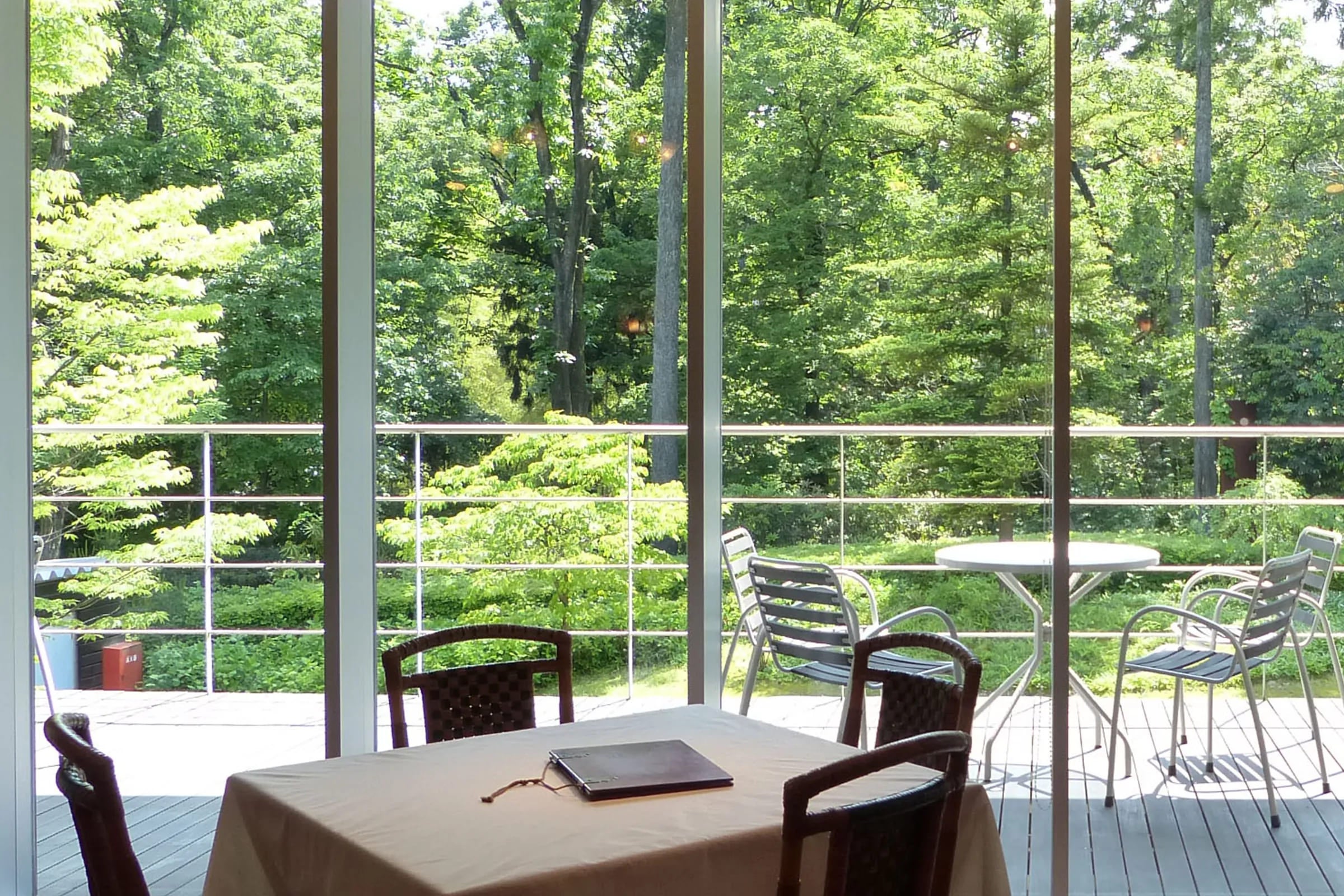 25年前の開館以来、美術館のカフェレストランとして、来館者にくつろぎと潤いを提供してきました。また、バルコニーで森林浴を楽しみながらのランチ・カフェタイムや、入居作家や工房の手掛ける作品を販売するミュージアムショップ、森の非日常空間におけるウェディングは、当館独自のものとして評価を受けておりました。