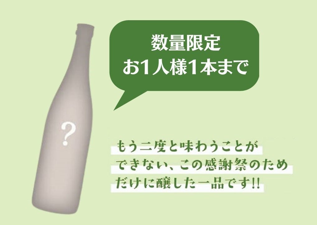 2度と味わう事ができない本イベントの為だけに醸した特別なお酒を、会場にてお1人様1本限定で販売いたします。