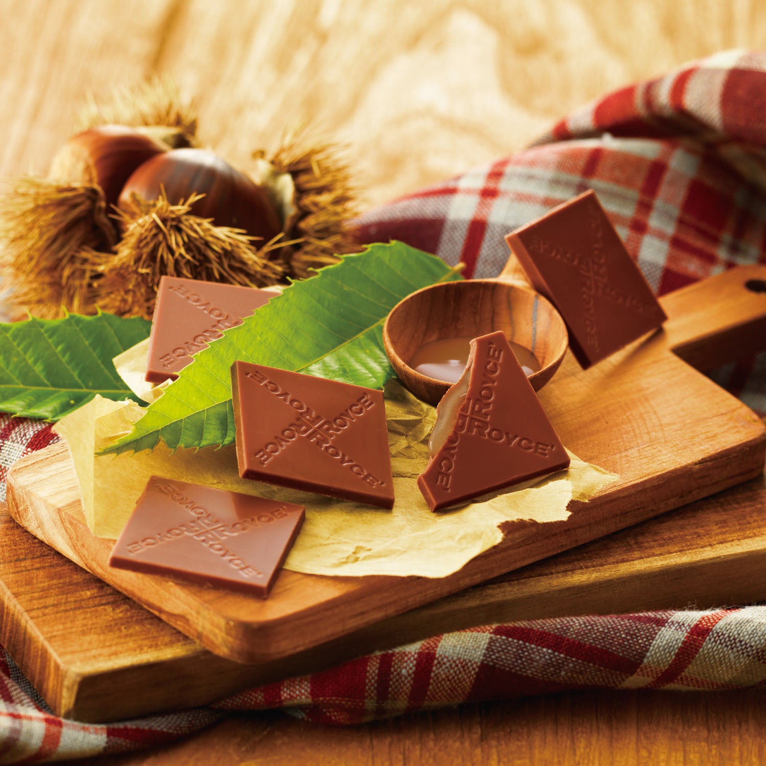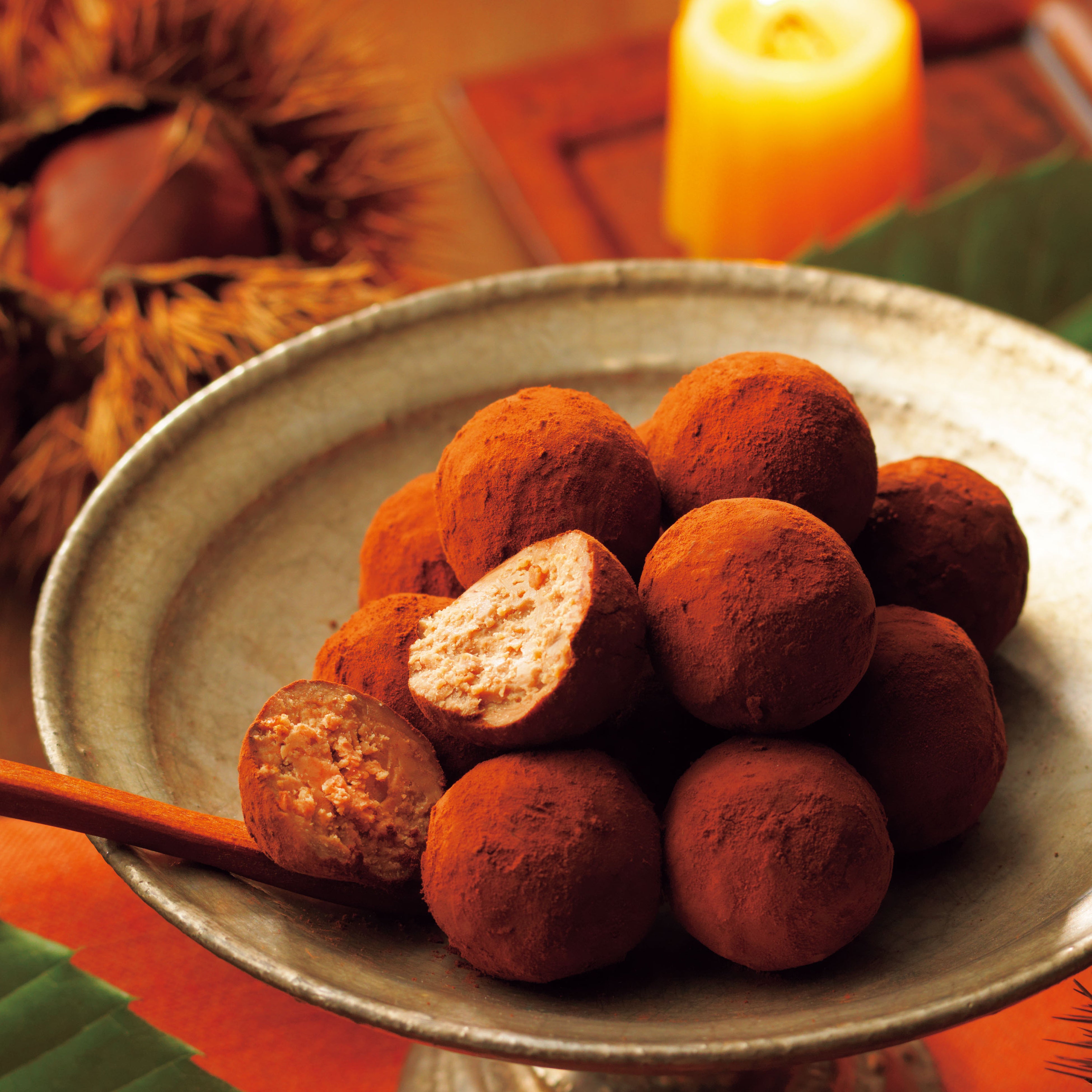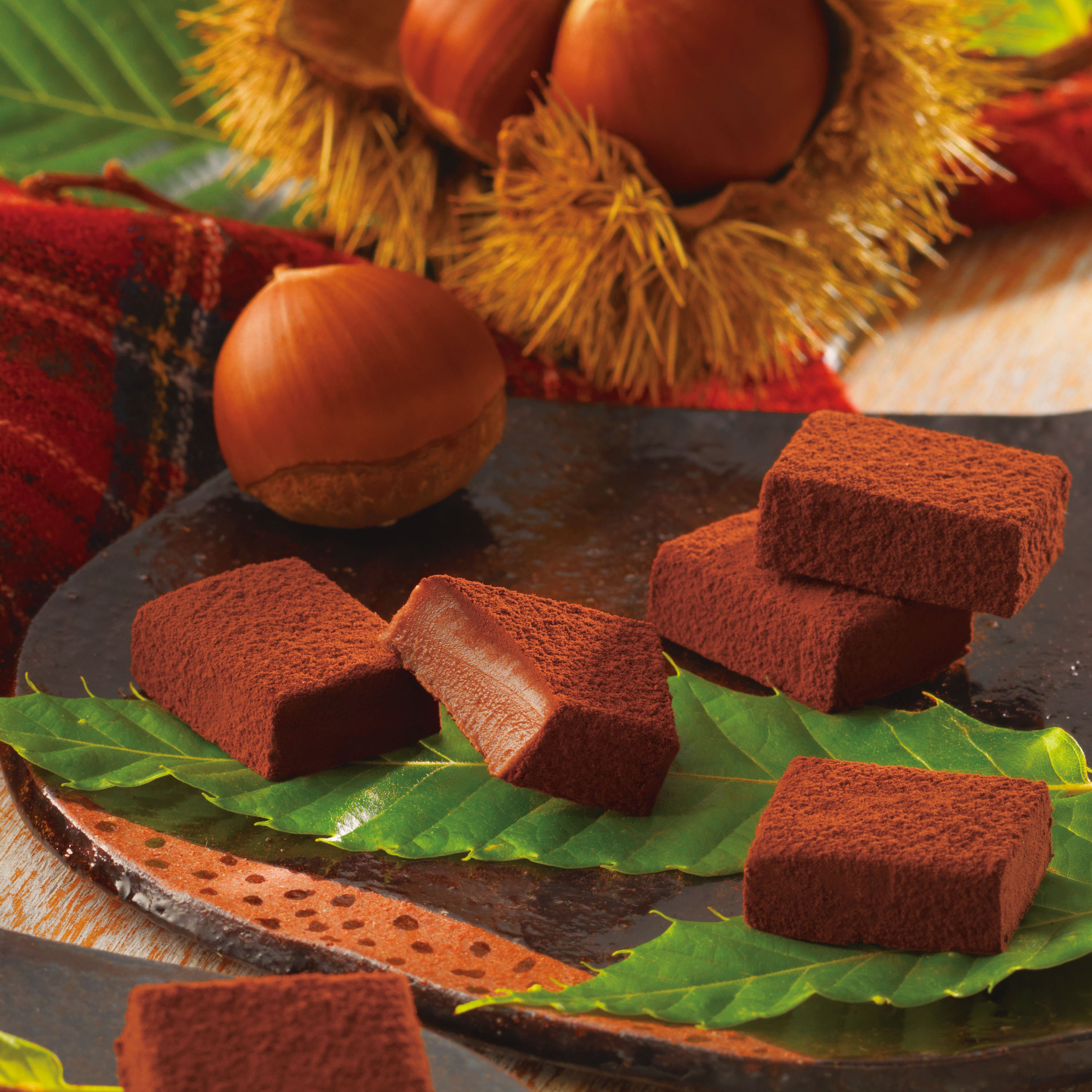 ミルクチョコレートにマロンパウダーをブレンドした、栗の味わいをダイレクトに感じられる生チョコレート。