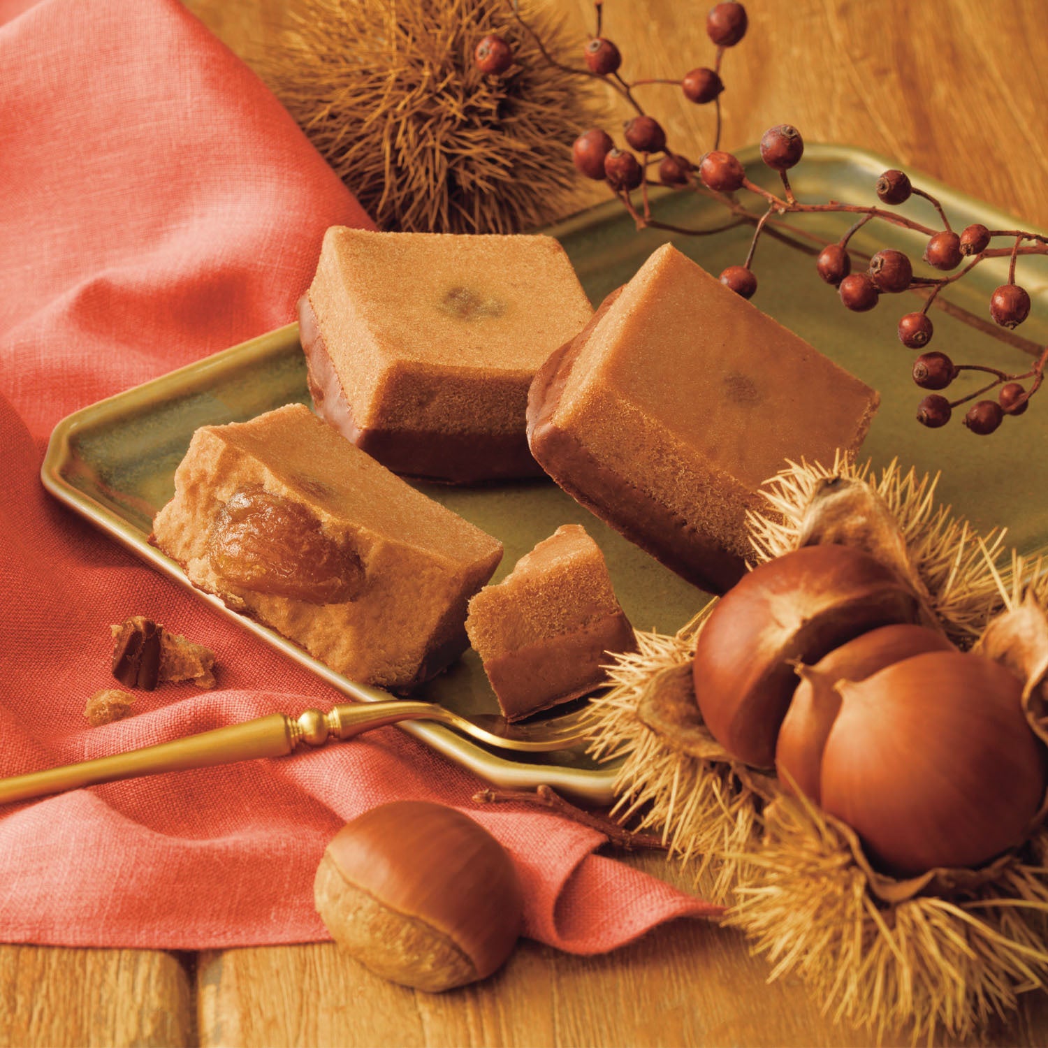 マロンクリームと焼き栗の香ばしさを生かしたペーストやマロンチョコレート、マロンリキュールを合わせた生地に、糖漬けしたイタリア産マロンを入れて蒸し焼きにしました。しっとりなめらかな口あたりとともに、栗の濃厚な味わいが広がります。