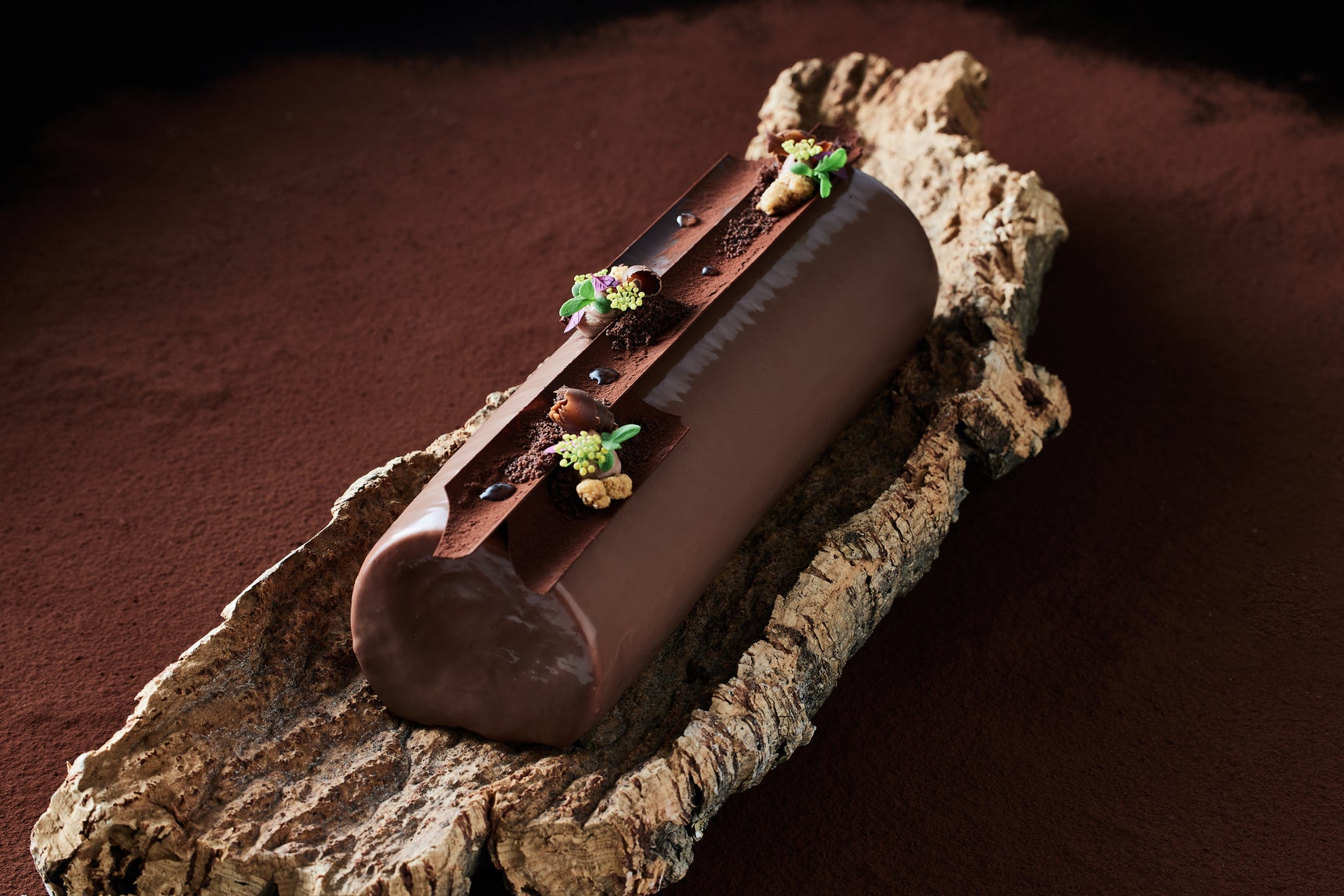 自然豊かな森をイメージし、濃厚なチョコレートをメインにしたクリエイションもラインアップ。ロール状にしたスポンジをチョコレートムースでつつみ、香ばしいプラリネクランチ、心地よい酸味の柚子マーマレードもイン。芳醇で力強いカカオの味わいを存分にご堪能ください。