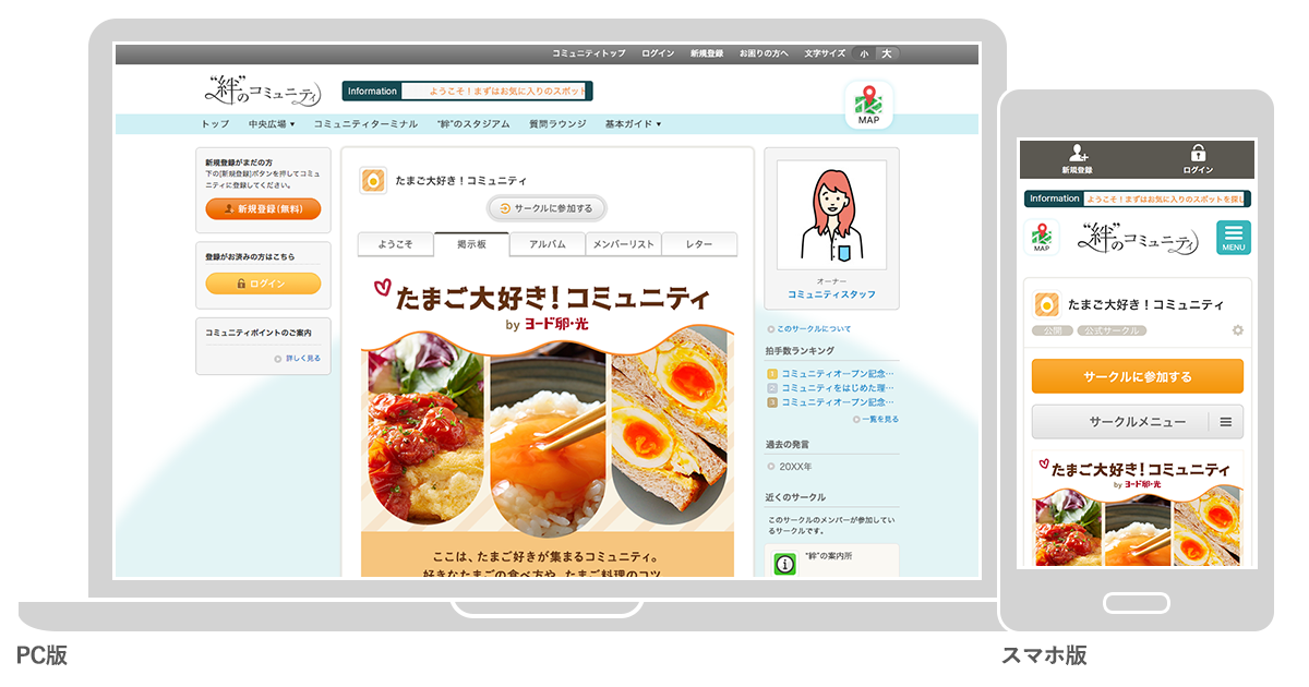 「たまご大好き!コミュニティ」は「“絆”のコミュニティ」上に開設されました。「“絆”のコミュニティ」とは2020年1月に開設した、クオンが運営するオンライン上のファンコミュニティプラットフォーム。50以上の企業・自治体と200万人を超える生活者が集い、“絆”をテーマにした交流や、参画企業・団体のコラボレーション企画、双方向コミュニケーションから生まれる生活者の声をもとにした価値共創のイベントなどを実施しています。https://www.beach.jp/community/KIZUNA/