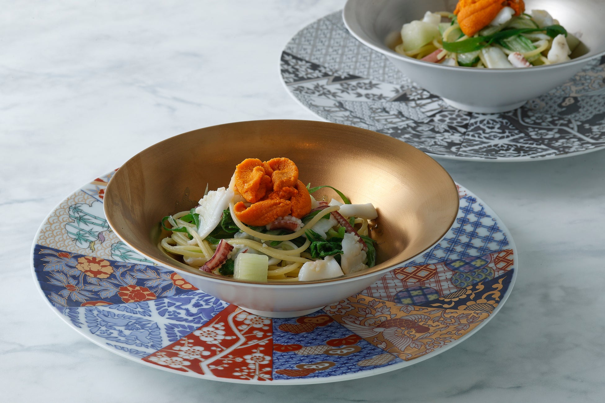 ・玄界灘産呼子のイカと塩水ウニのスパゲッティーニ +¥1,870 (いずれも税込・サ別)