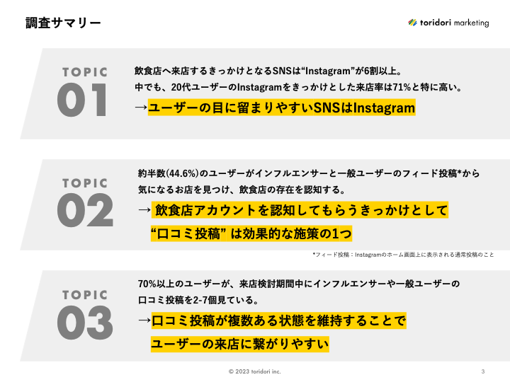 今回の調査のテーマは「SNS投稿を見て飲食店へ来店するユーザー行動の実態」です。