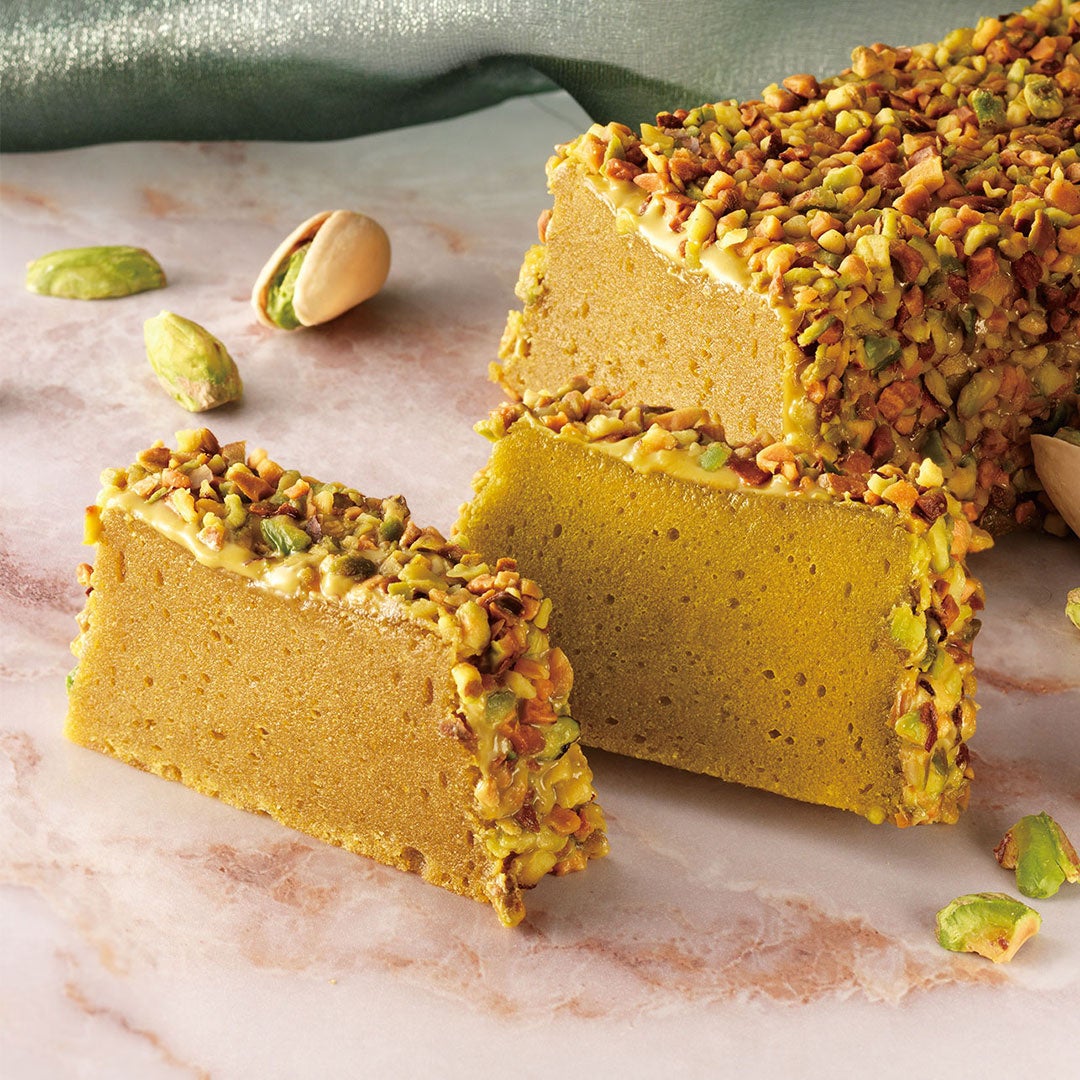 ピスタチオのペーストを贅沢に練り込んだ生地をじっくりと蒸し焼きにし、砕いたピスタチオをたっぷりとまとわせました。香り高く気品あふれるピスタチオの味わいを存分にお楽しみください。