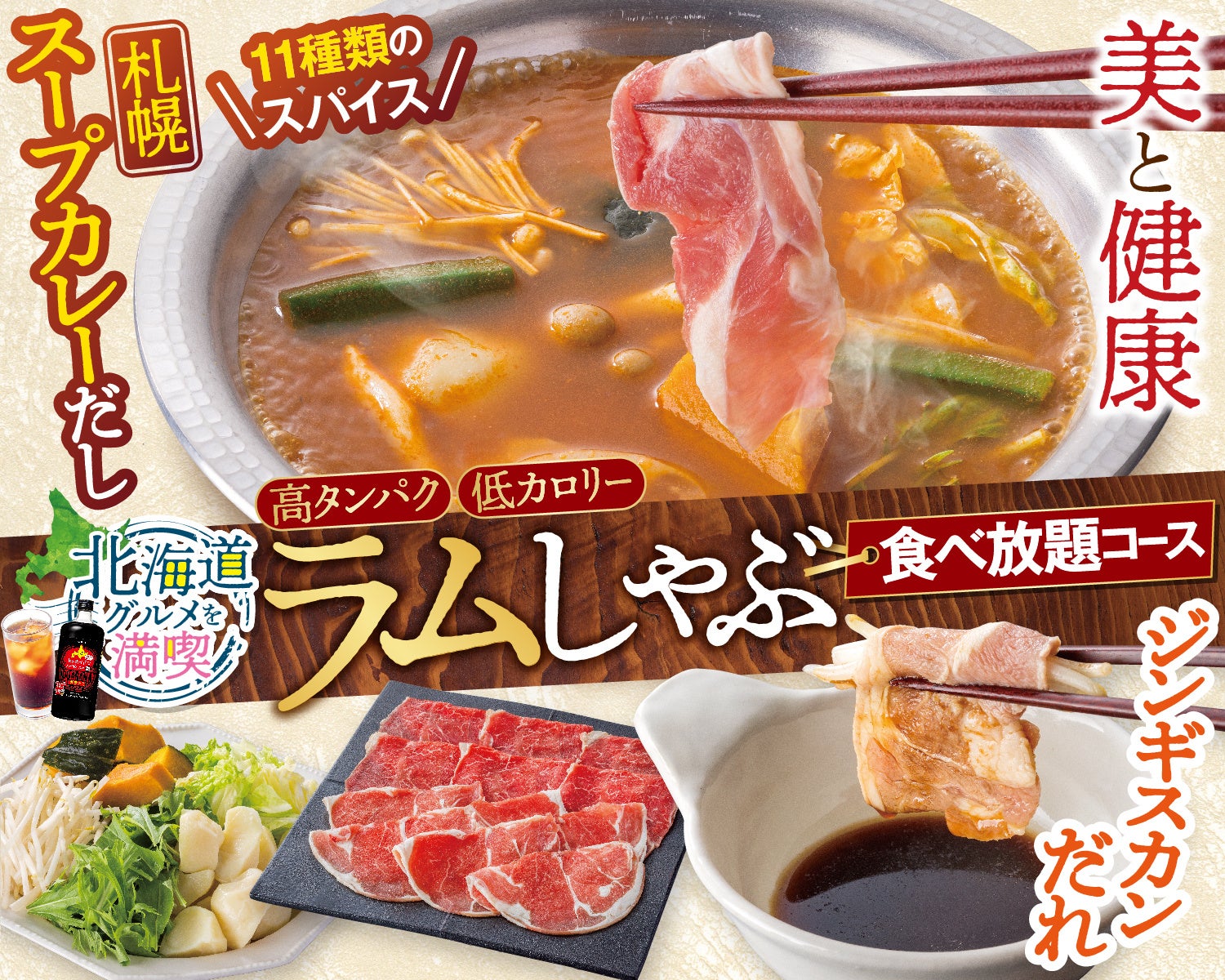 【 しゃぶ葉 ラムしゃぶ食べ放題フェア 】 ① お手頃価格! ② 北海道の本場の味を追求! ③ 北海道のソウルドリンク! |