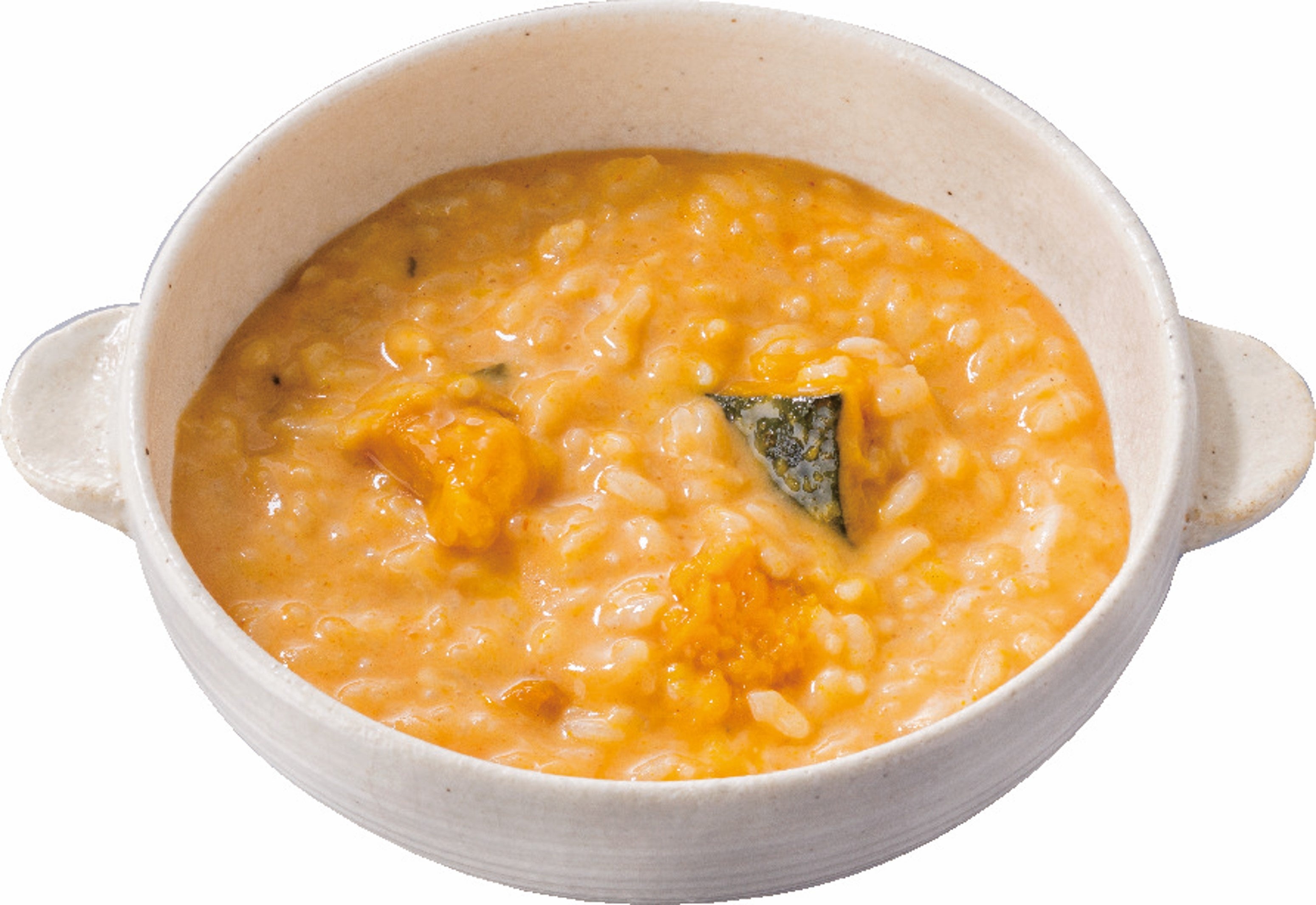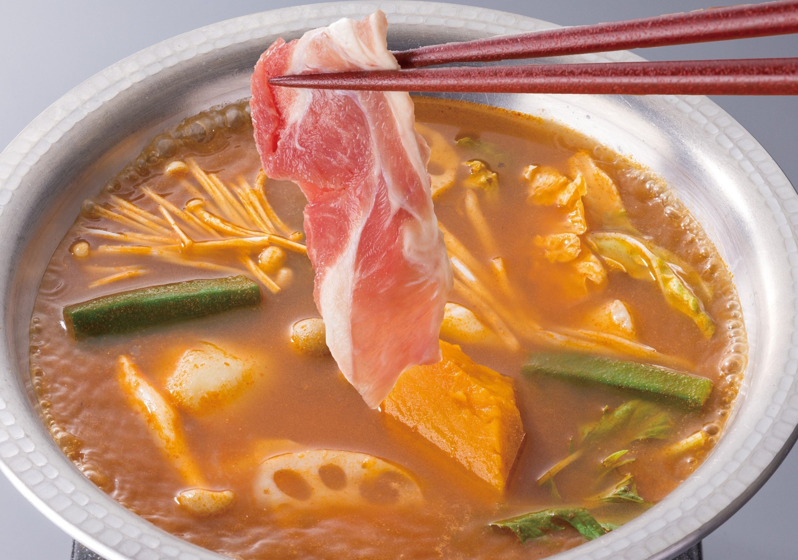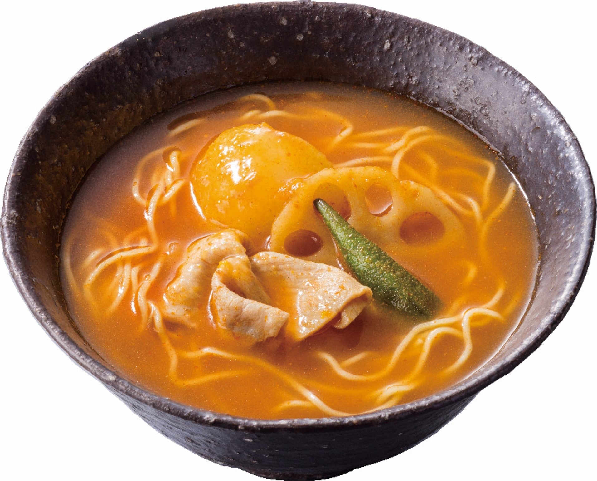 トマト、鶏がらだし、あごだしなどの合わせスープに、11種類のスパイスを調合した風味豊かな新だし。新登場の北海道産の「かぼちゃ」「じゃがいも」と組み合わせると本格的なスープカレーを楽しめます。