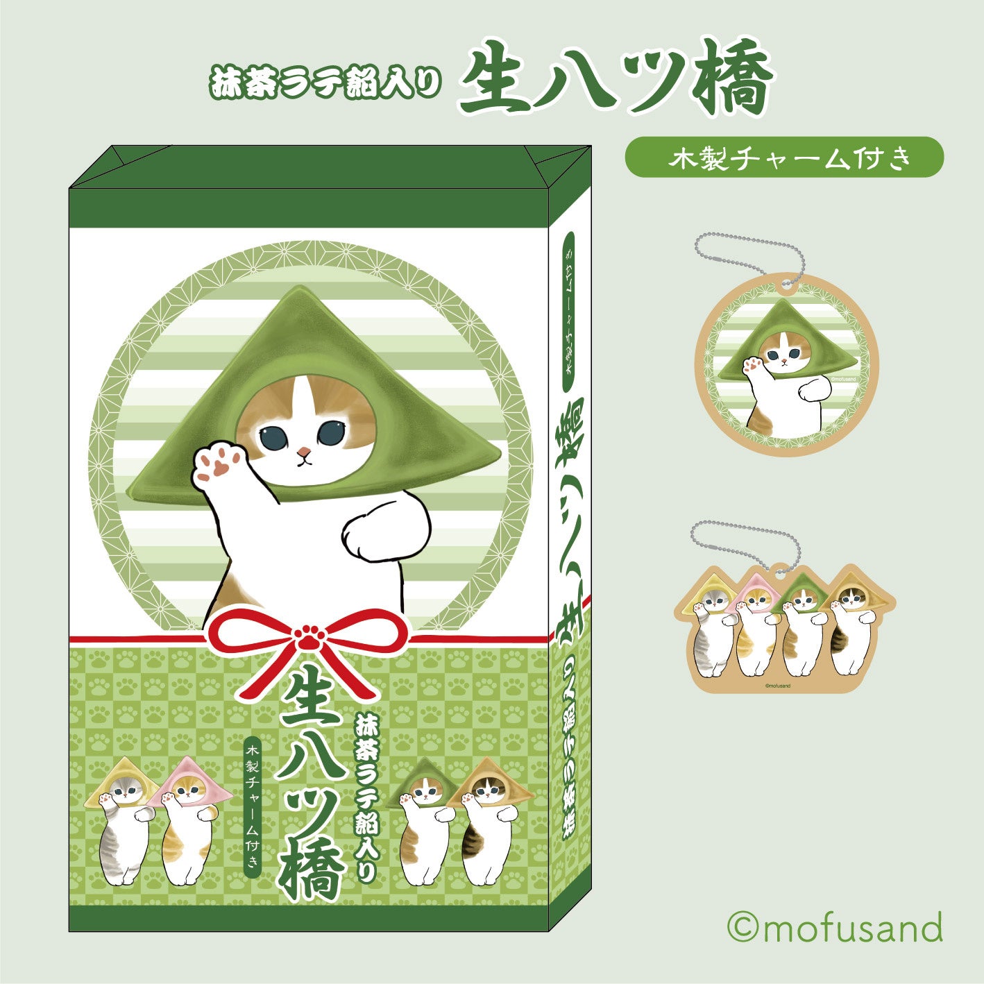 また、隣接する株式会社猫草ブース内では、「mofusand」のアクリルクリップ付きドリップバッグセット、桐箱入りのカステラ、および木製チャーム付き生八ツ橋を先行販売致します。