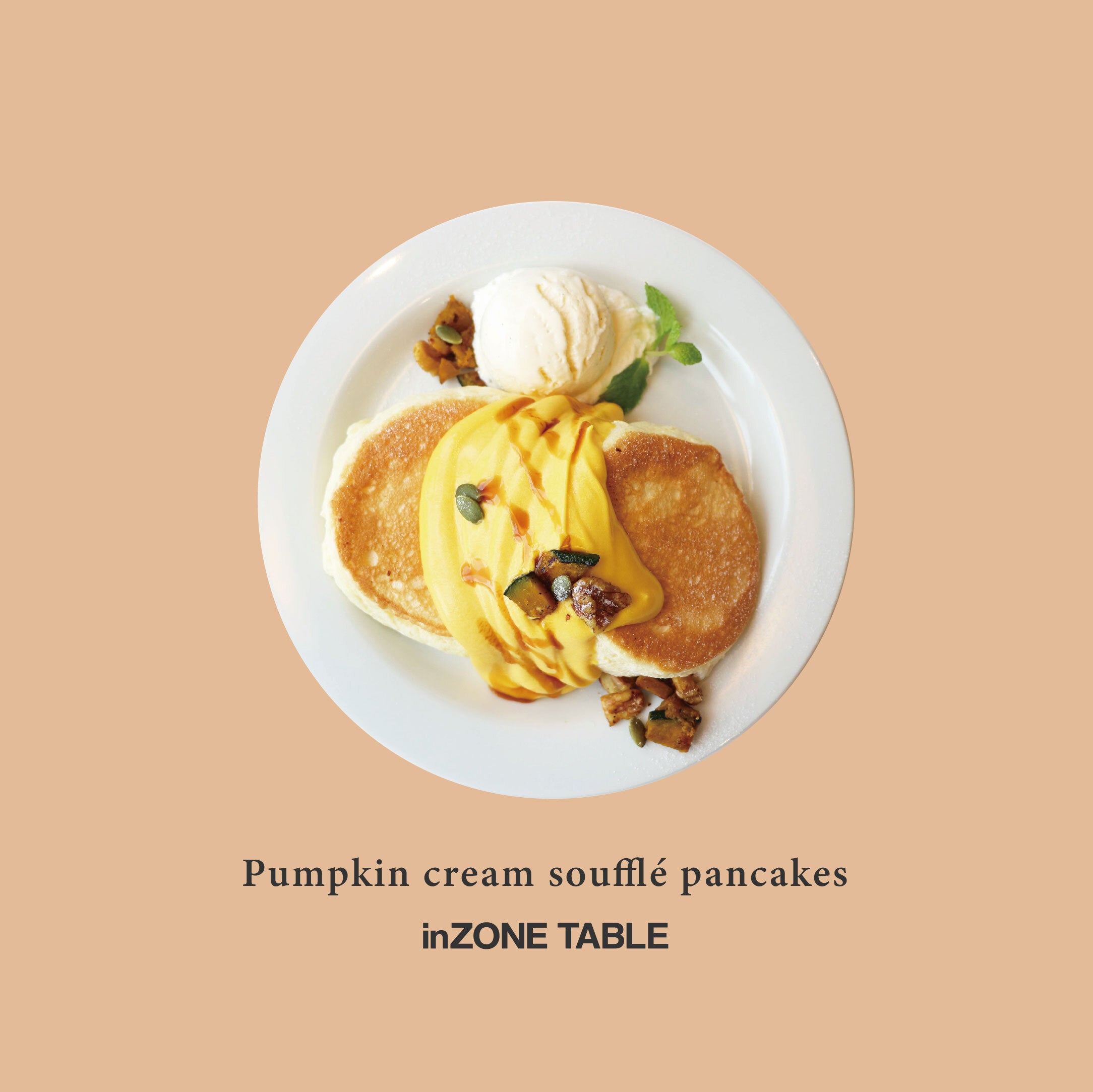 カボチャクリームのまろやかな甘みが広がるスフレパンケーキ