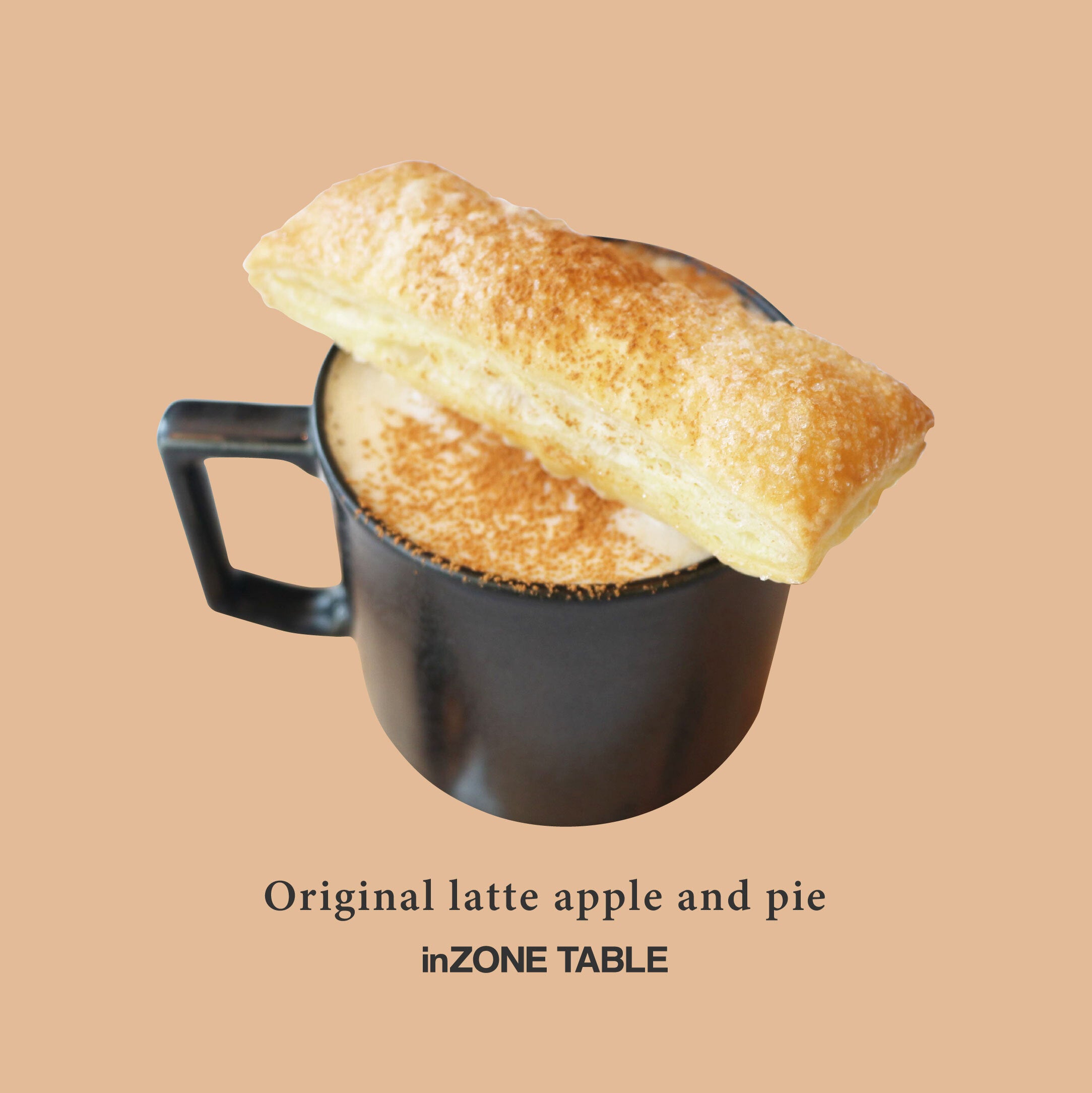 エスプレッソにりんごの果肉が入った自家製シロップと、温かいミルクで優しい甘さに仕上げました。パイは浸したり砕いたり、そのままかぶりつくもお好みで。シナモンの香りが秋の訪れをより感じさせます。