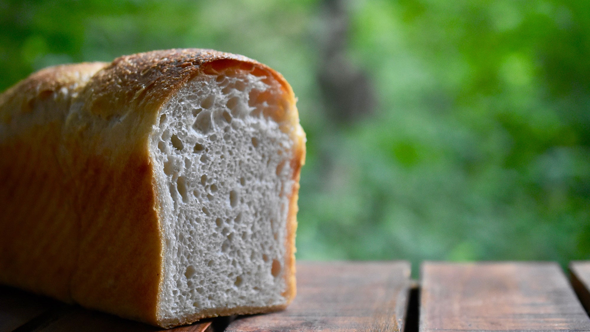 卵や乳製品を使わず、白米のようなもっちり、しっとりとした質感で食べ応えのある食パン。2種類の自家製酵母をかけ合わせ、絶妙な水分量により、噛みしめるほどに小麦の旨味と奥深い味わいを感じていただけます。
