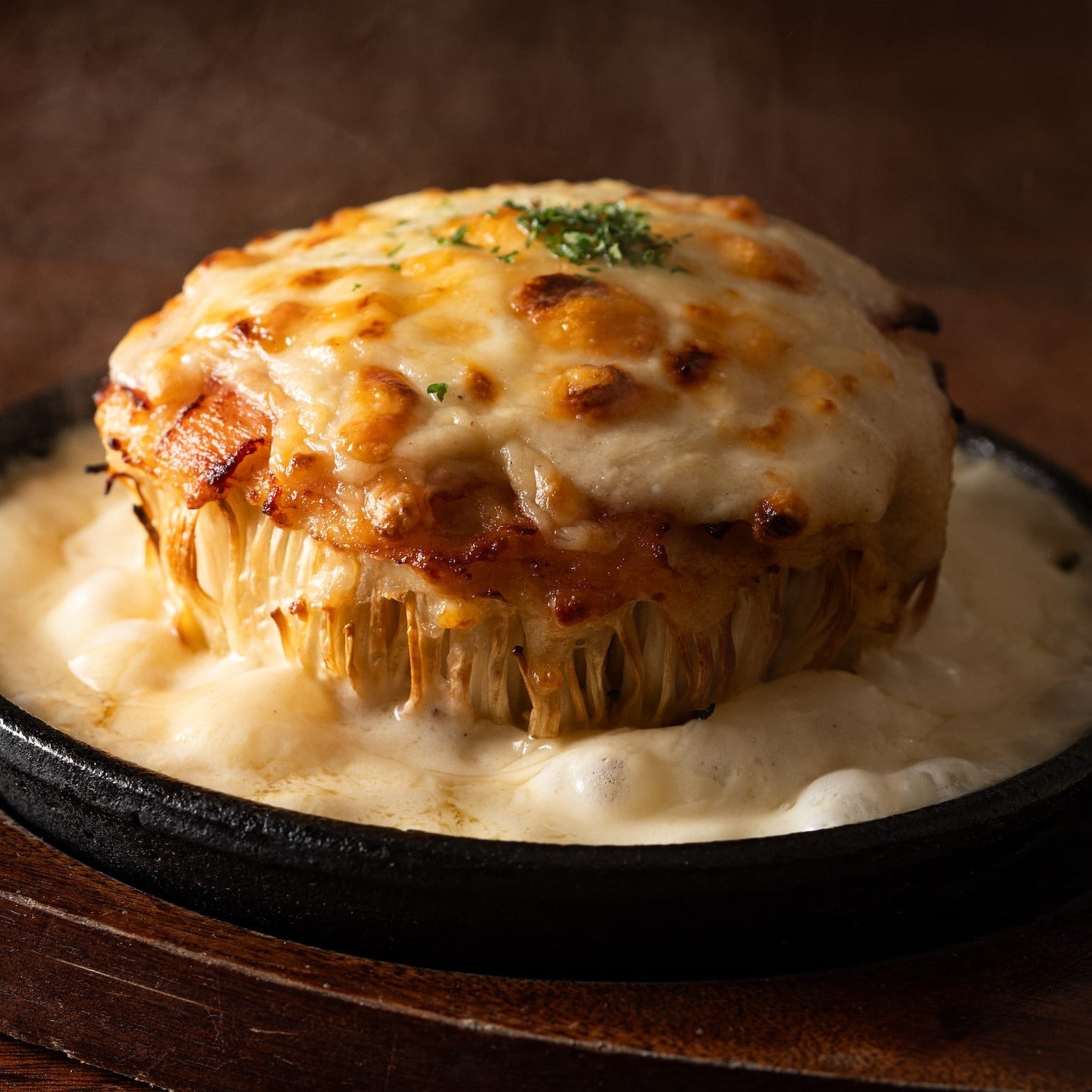 かつて宮崎県に視察に訪れた塚田農場の商品開発が、加藤さんの「生産者はえのきの株をおいしく食べている」こと、「何か商品できないか」というお話をもとに誕生させた商品で、発売来、塚田農場の秋を代表する人気の料理となりました。