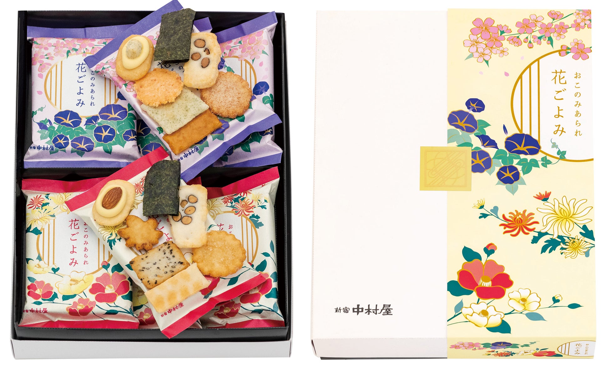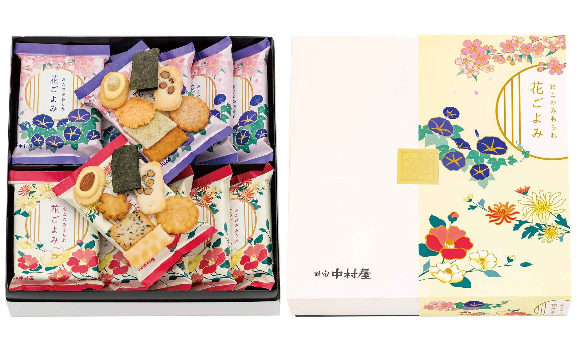 ・1袋に7種ずつ2種類(春夏・秋冬)のデザインの個包装に入ったバラエティ感のある食べきりサイズのあられの詰め合わせです。