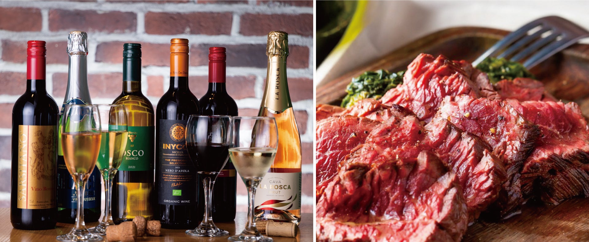 ESOLAでは常時100種類の世界のワインを取り揃えており、本格イタリアンのおつまみメニューと一緒にお楽しみいただけます。ランチメニュー、各種パーティプランなど様々なシーンでご利用可能です。ぜひ、お得なこの機会にお試しください!