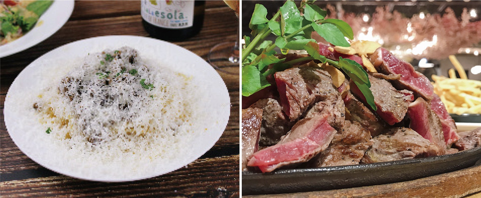 (右)豪快!ステーキ肉盛り合わせ 3,299円(税込)